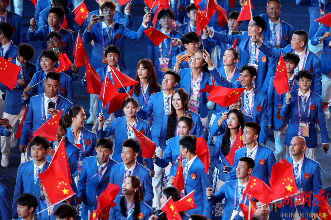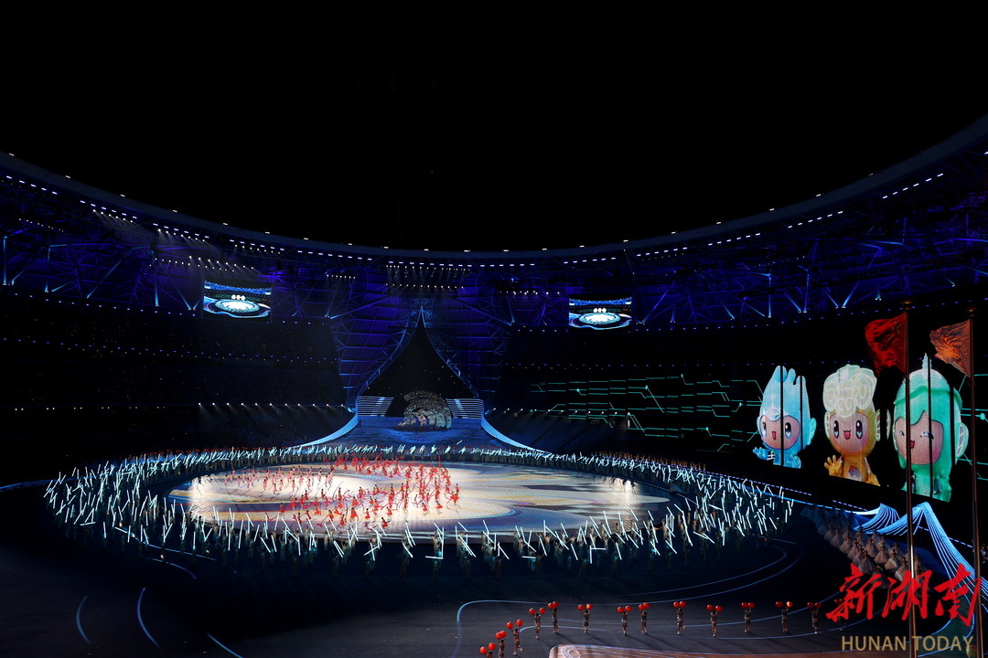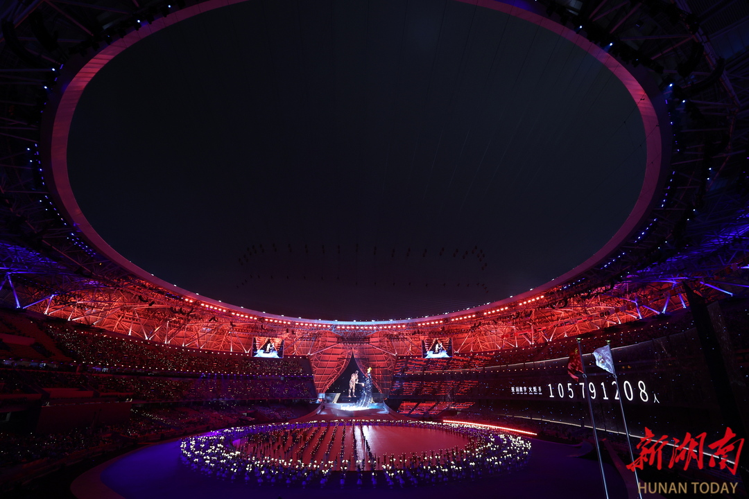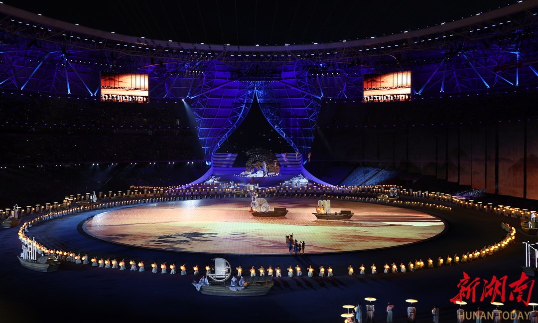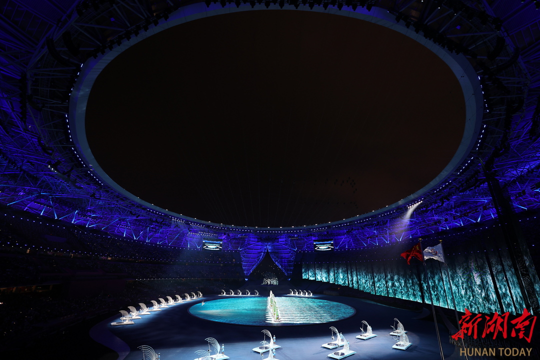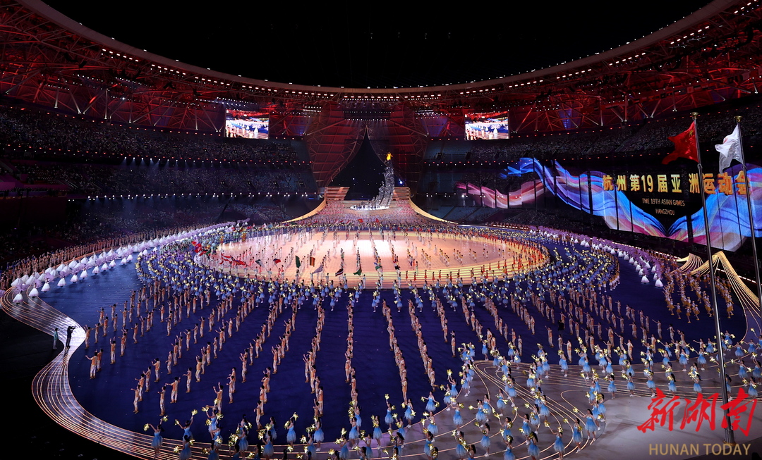 新湖南客户端9月23日讯(特派记者 胡旻)9月23日晚,钱塘江畔。杭州用一场以“潮起亚细亚”为总主题的盛大开幕式,为第19届亚洲运动会启航。以体育为媒,中国再一次敞开热情怀抱,向世界呈现中华文化之美,展示各方携手推动构建亚洲命运共同体的澎湃力量。亚运火炬熊熊燃烧,将共同见证亚洲体育健儿在“更快、更高、更强——更团结”的奥林匹克格言激励下奋勇拼搏的身姿。(图为开幕式现场)