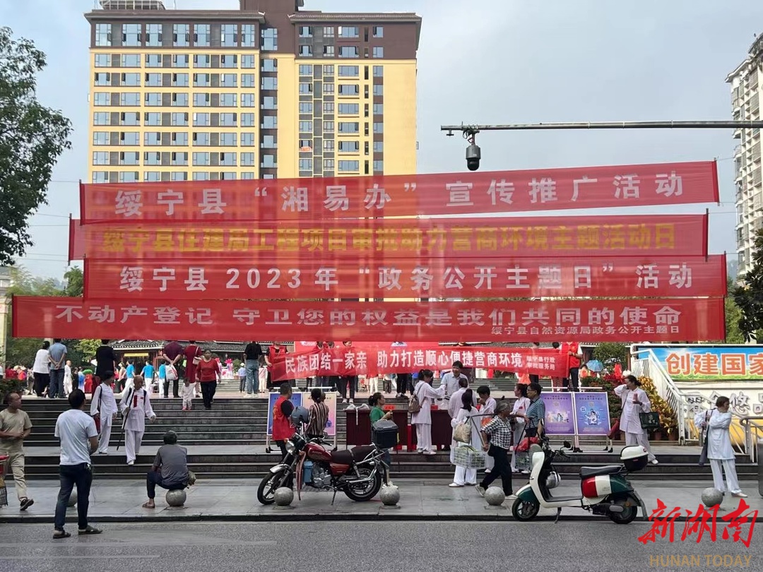 湖南日报·新湖南客户端9月28日讯(通讯员 于琰)9月27日上午,绥宁县住房和城乡建设局联合县行政审批局、县发改局、县自然资源局在绿洲广场开展“政务公开主题日”活动。通过不断深化工程建设项目审批制度改革,强化服务意识,拓宽服务领域,优化办事流程,实现全流程在线审批,极大提升了项目审批效率,有力支持全县各项工程建设顺利推进。