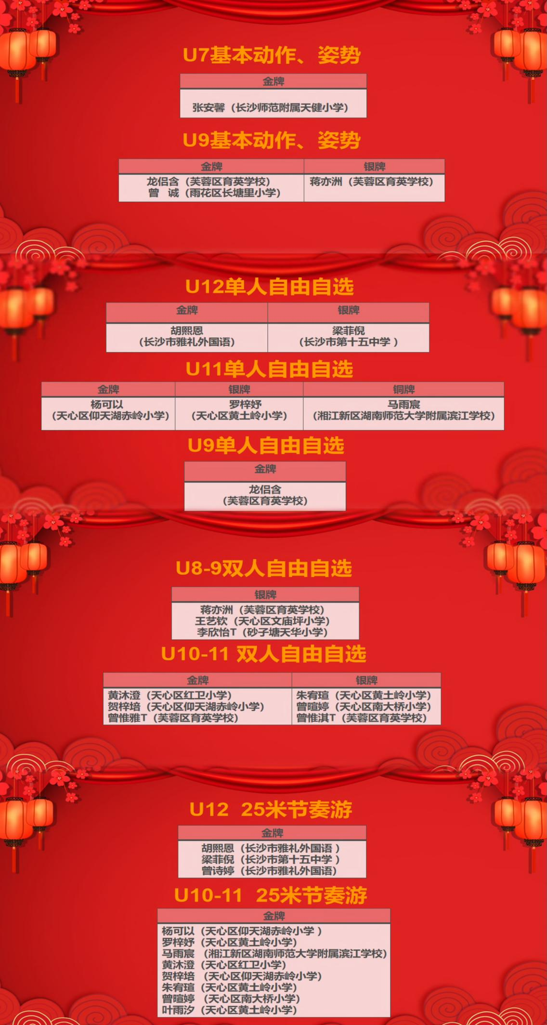长沙市花样游泳队队员获奖名单