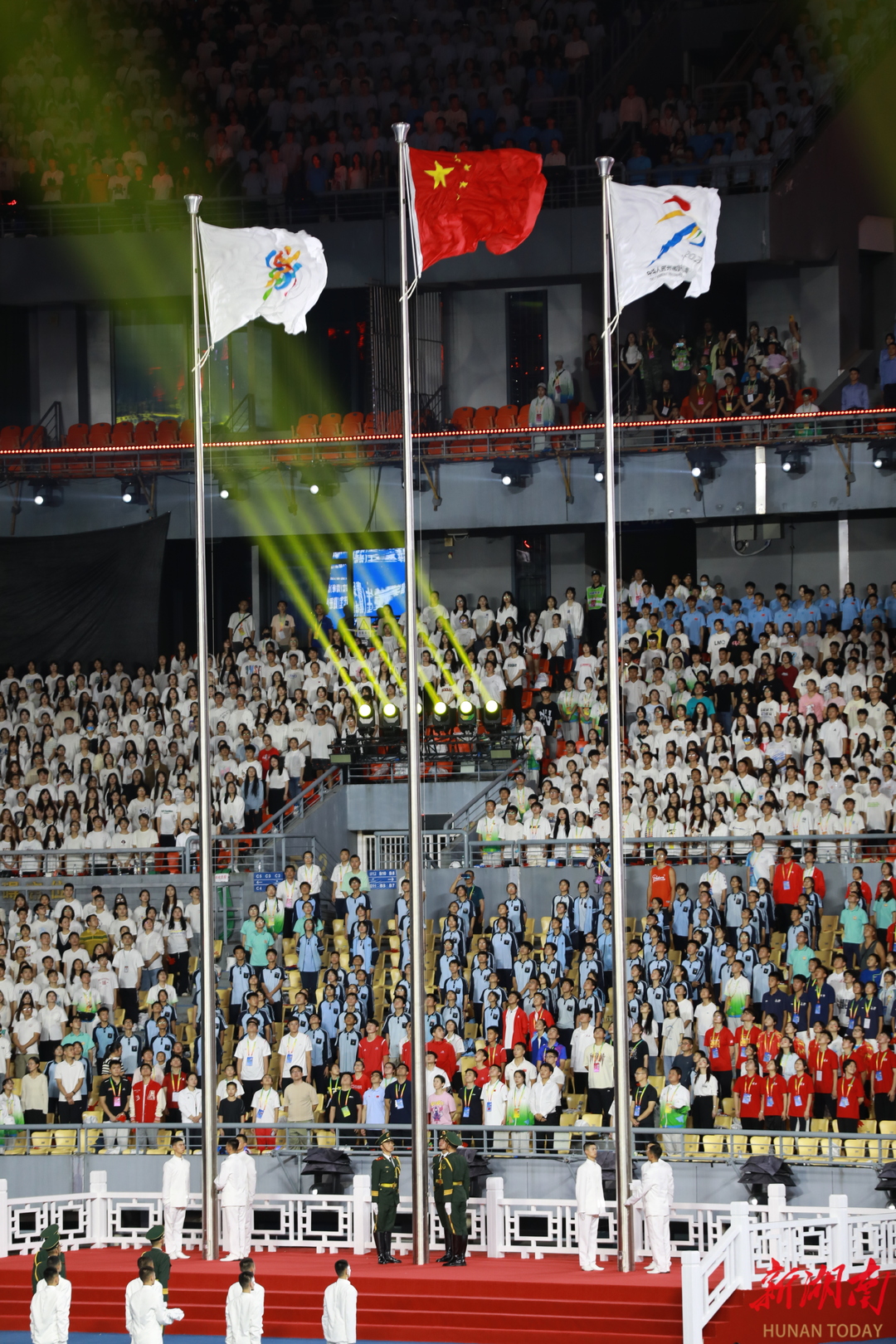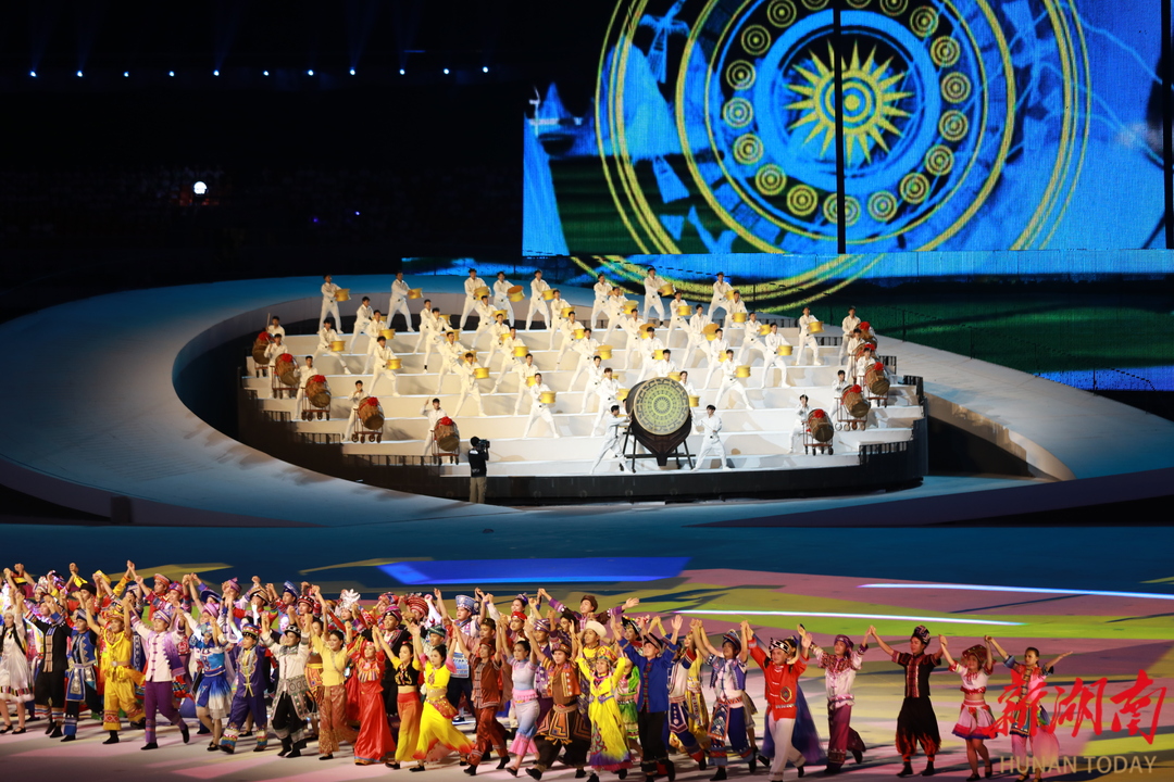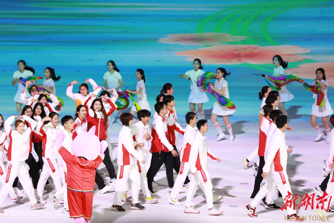 新湖南客户端11月5日讯(记者 胡旻)“逐梦新时代,青春更精彩。”11月5日晚8时,由教育部、国家体育总局、共青团中央共同主办,广西壮族自治区人民政府承办的第一届全国学生(青年)运动会(简称“学青会”)开幕式在广西体育中心体育场举行。
