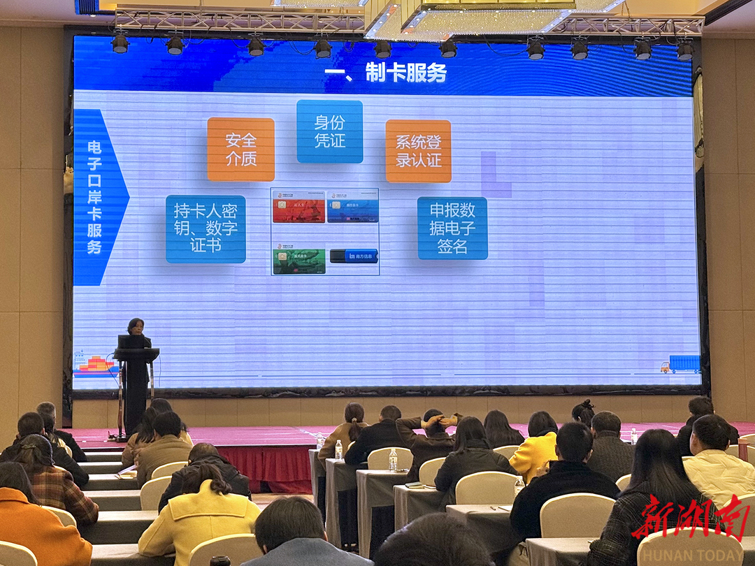 湖南日报·新湖南客户端11月30日讯(记者 田育才 通讯员 鄢渊)11月30日上午,中国(湖南)国际贸易“单一窗口”功能应用推广会在张家界市武陵源区举行,湖南省人民政府口岸办主任邓卫平携长沙海关、各市州口岸主管单位以及银行、保险等单位专家,为数百名参会企业代表全面解读电子口岸“一站式”通关服务及海关、金融、保险相关政策、业务,以实际举措推动营商环境优化、跨境贸易便利化。