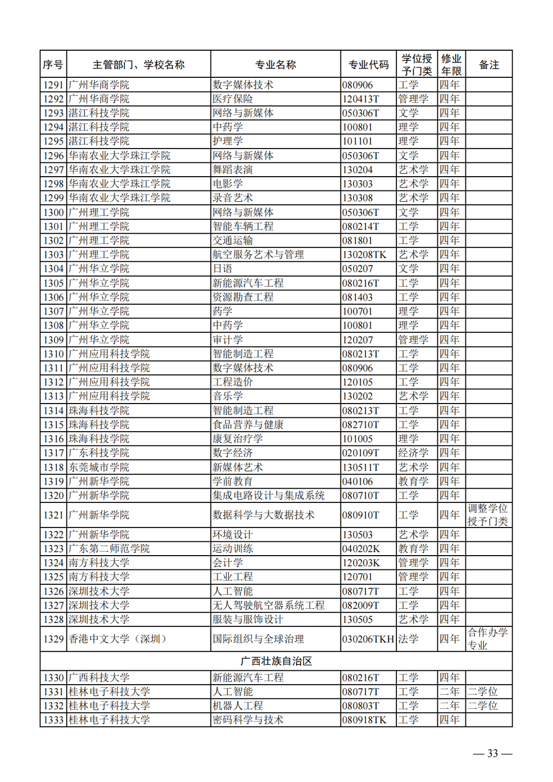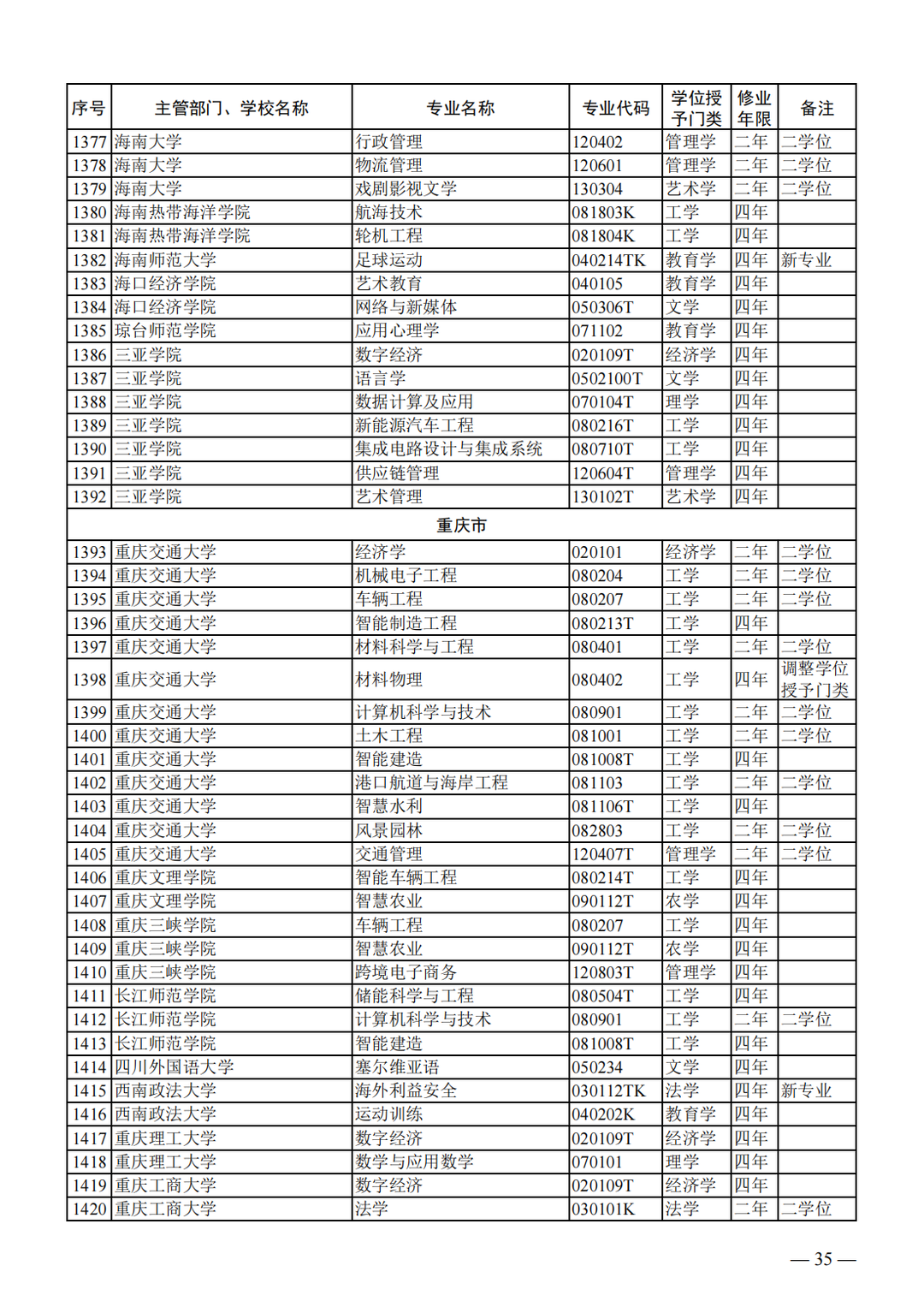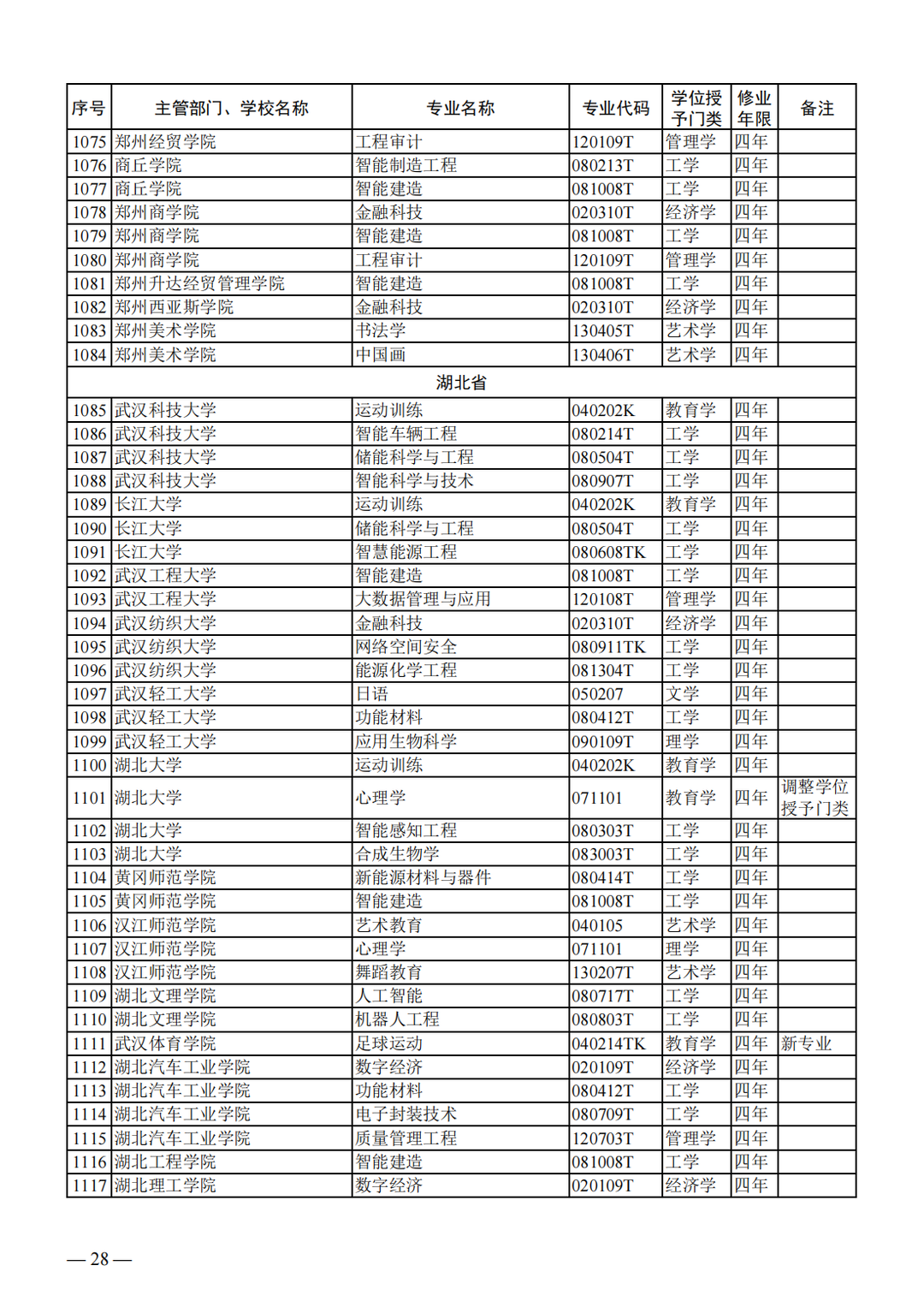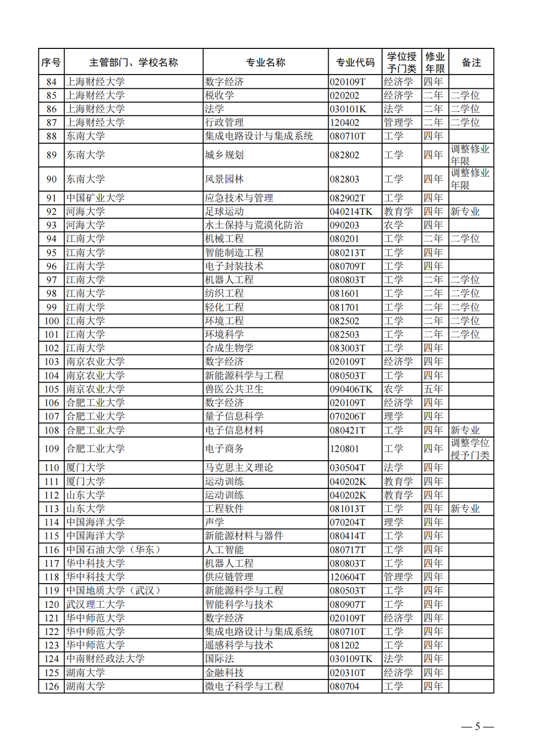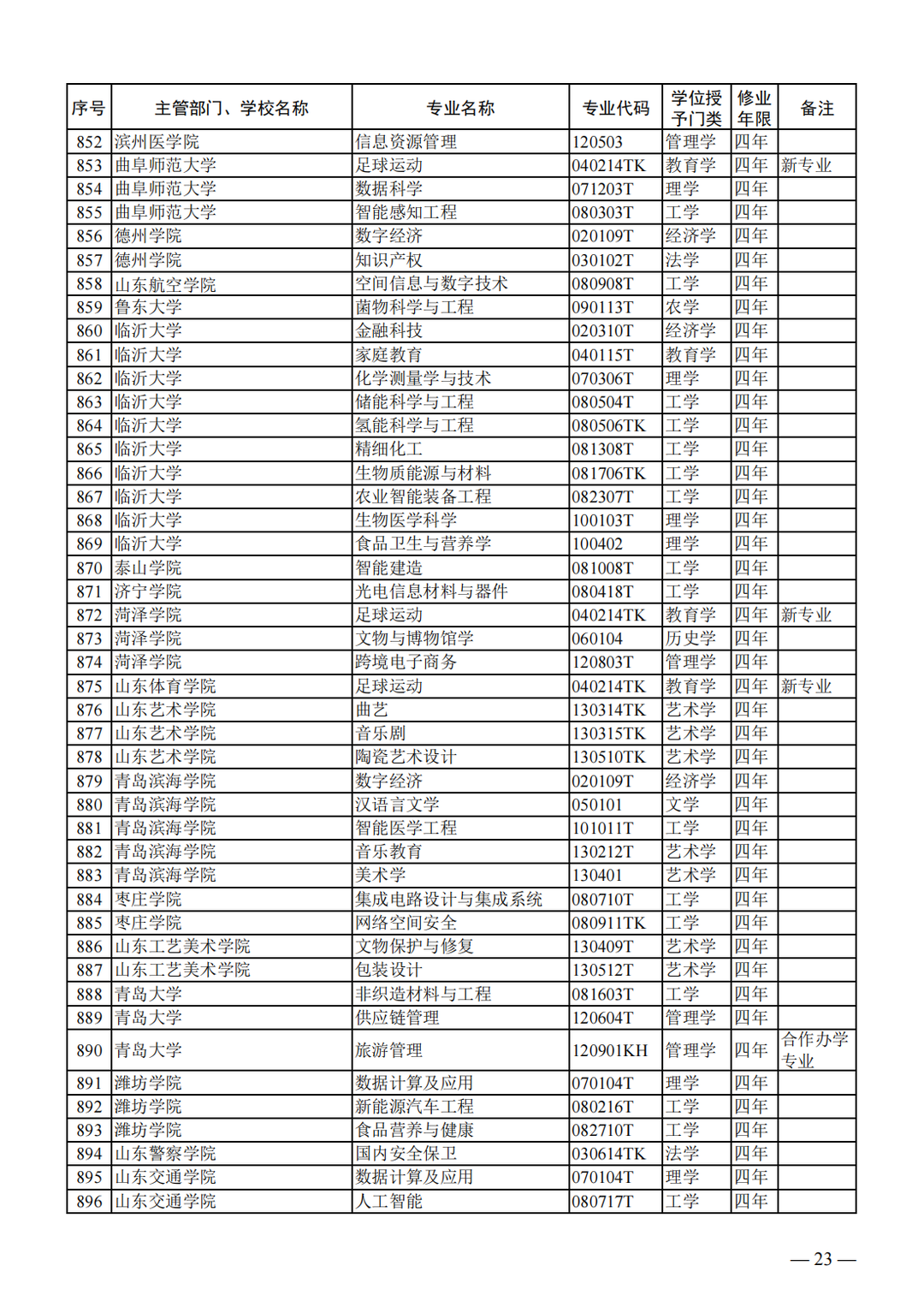 教育部关于公布2023年度普通高等学校本科专业备案和审批结果的通知