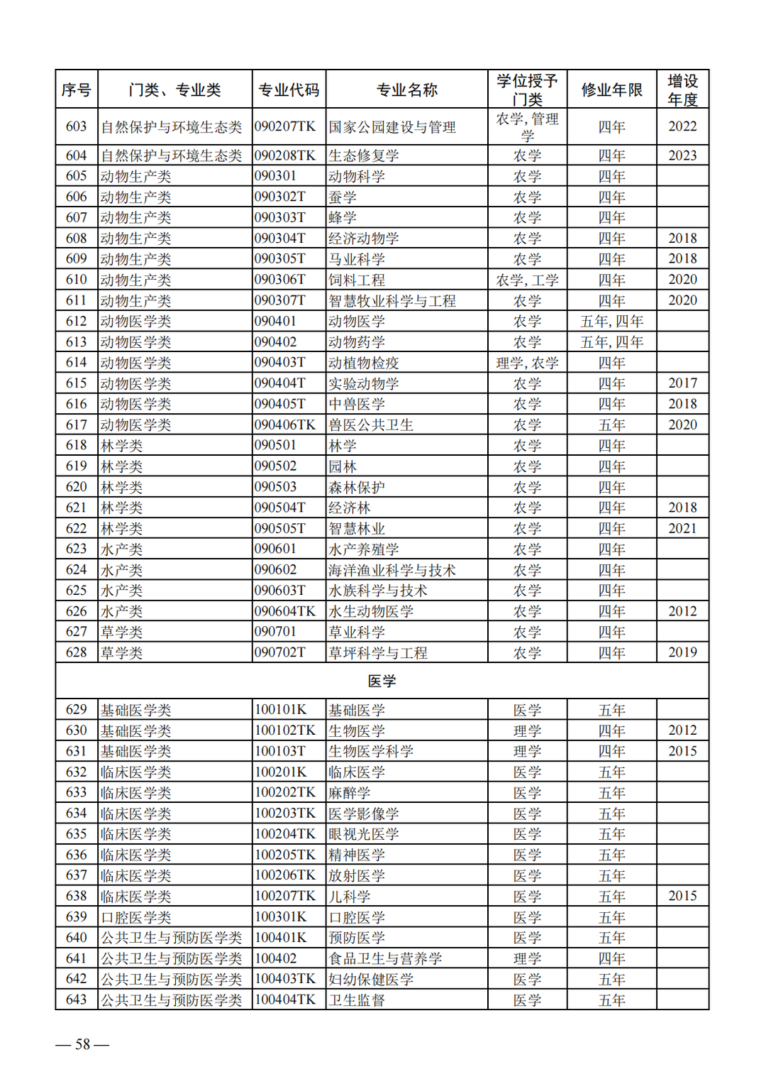 按照教育部等五部门印发的《普通高等教育学科专业设置调整优化改革方案》(教高〔2023〕1号)有关要求,根据《普通高等学校本科专业设置管理规定》(教高〔2012〕9号),我部组织开展了2023年度普通高等学校本科专业设置和调整工作。经申报、公示、审核等程序,对各地各高校向我部申请备案的专业予以备案;根据高等学校专业设置与教学指导委员会评议结果,确定了同意设置的国家控制布点专业和尚未列入专业目录的新专业名单,并将资源勘查工程、护理学、助产学调整为国家控制布点专业。现将备案和审批结果(附件1)、《普通高等学校本科专业目录(2024年)》(附件2)一并予以公布。请各地各高校加强对新设专业的建设和管理,不断提高人才培养质量。