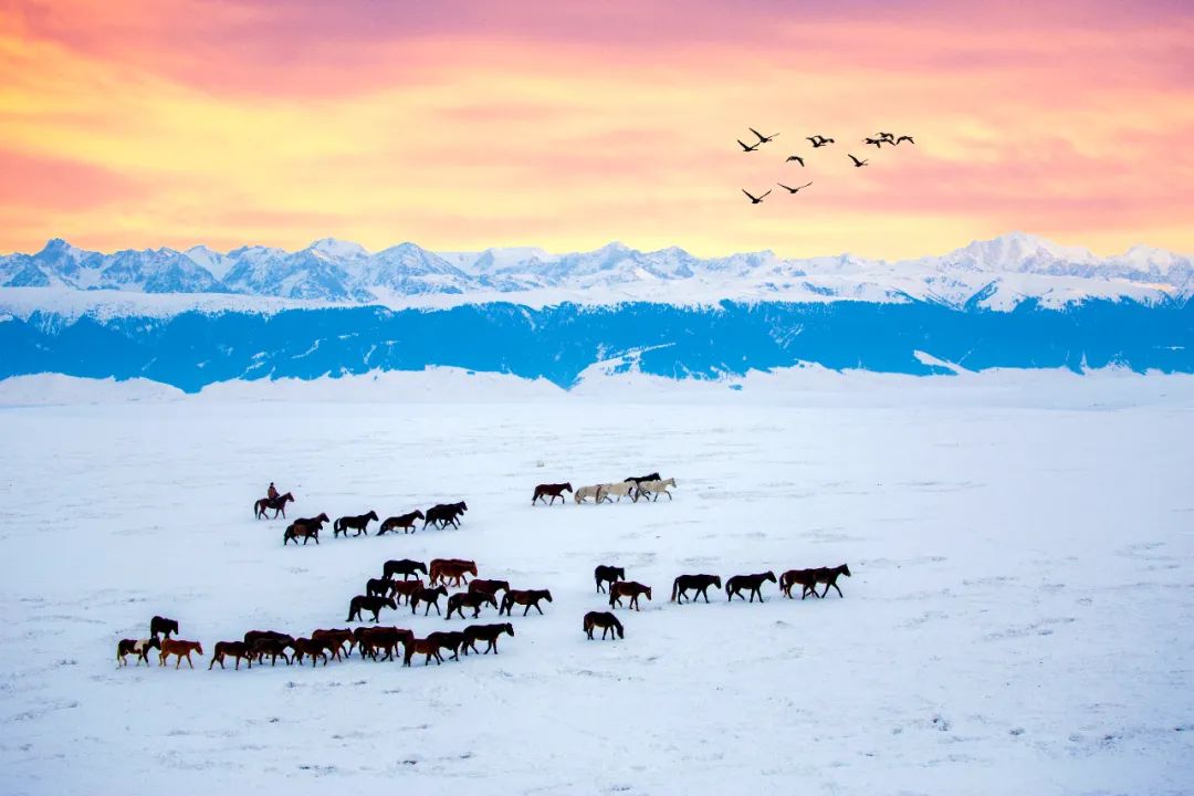 昭苏湿地草原冰雪奔马、天鹅泉美丽雾凇蒸气天鹅、哈萨克族雪地飞马叼羊、人体草原光影线条……新疆大美场景为我们带来一组精彩的作品,一起来欣赏和围观吧!