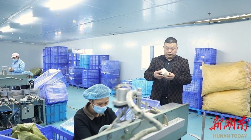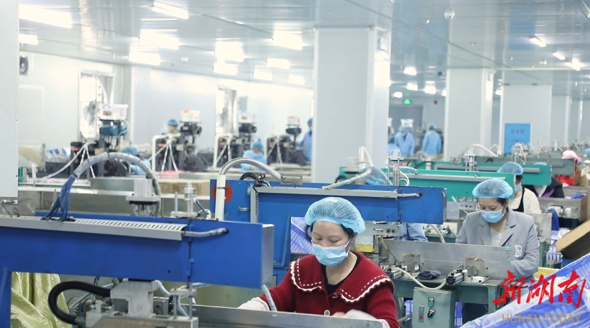 在湖南荣鹤家居用品有限公司的棉签生产车间里,各条生产线高速运转,工人们戴着头套和口罩,熟练地进行着各道工序。从原材料的投放到棉签的包装,每一个环节都严格把控,确保产品质量和安全。去年5月,浙江省台州市湖南商会应邀来江华考察,作为常务副会长的许启东也一同回到家乡,便被家乡的发展环境所吸引。他积极响应“湘商回归 返乡创业”的号召,于今年2月5日,与江华签约荣鹤家居用品项目,2月17日,便开始正式投产。