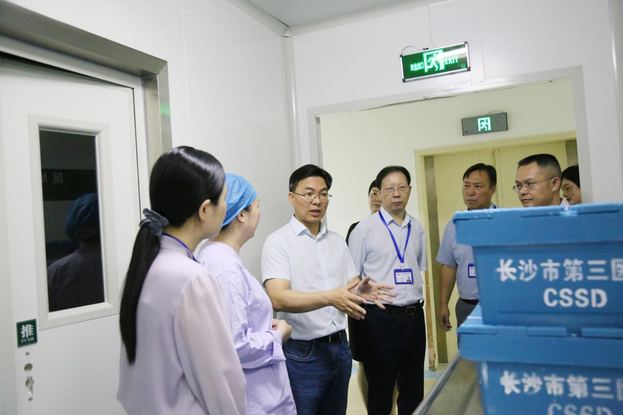 调研组采取实地调研、现场指导、座谈交流等方式,先后来到长沙市第三医院、坡子街街道社区卫生服务中心,全面了解天心区紧密型城市医疗集团建设进展情况,现场考察了天心区医疗集团区域医学检验中心、远程心电诊断中心以及消毒供应中心。