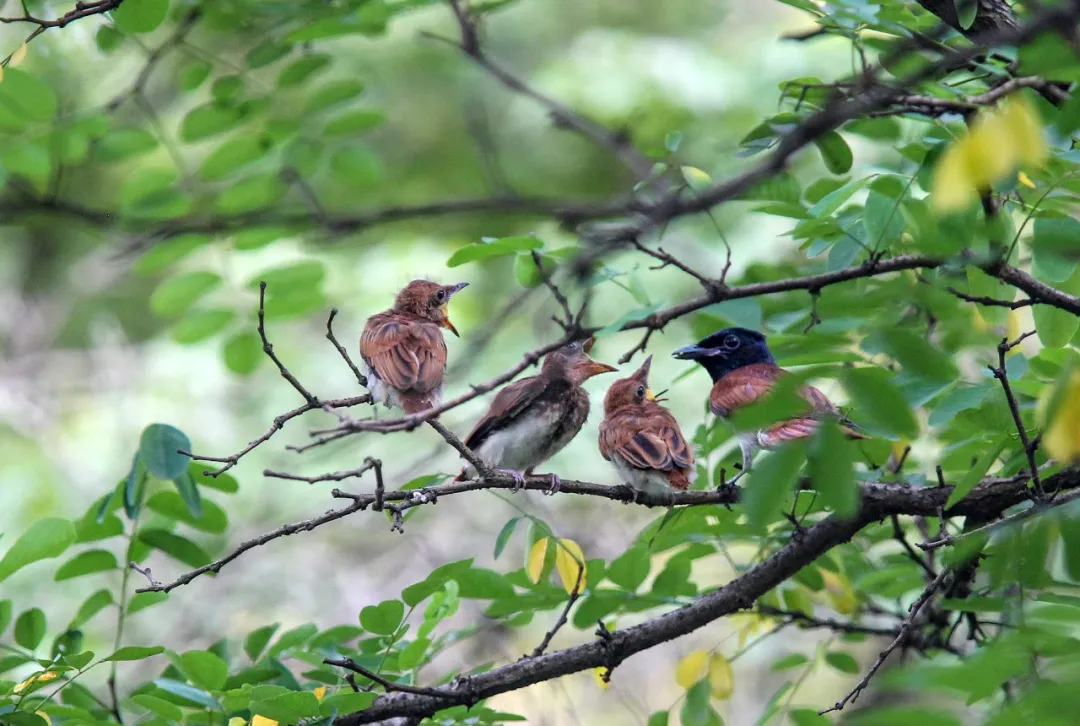 长沙市望城区高塘岭,寿带妈妈守护雏鸟。