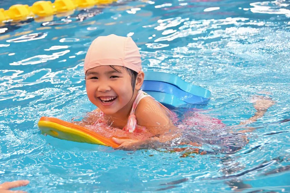 /江永县潇浦镇一家游泳馆,小朋友在练习游泳动作。田如瑞 摄