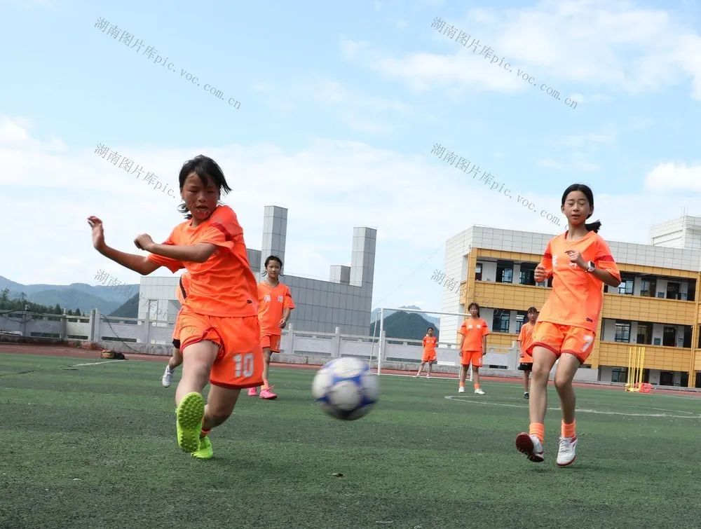 /在保靖县毛沟小学的足球场上,女子足球队员正在训练。俞采华 向伟 摄