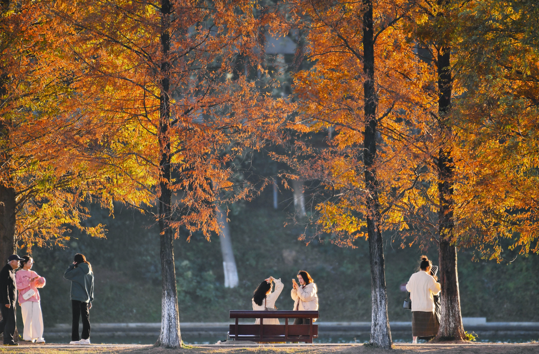 湖南烈士公园年嘉湖畔的水杉林,在冬日暖阳的照耀下,色彩浓郁。湖南日报全媒体记者 童迪 摄