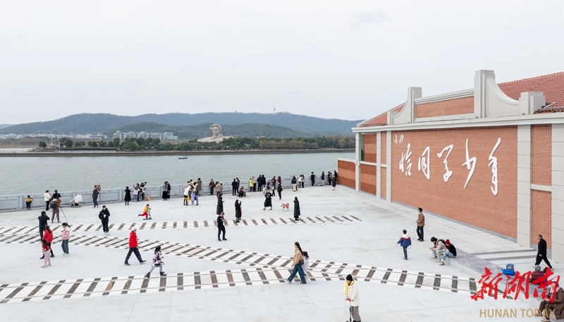 1月26日,长沙市天心区,市民和游客在恰同学少年广场游玩、拍照。近日,恰同学少年广场经过5个月的施工改造,已对公众开放。广场以“风华正茂”为核心主题,结合码头、火车等元素,借助文化廊架等场地设施,进一步展现“书生意气,挥斥方遒”的精神内涵,给长沙“新外滩”增添亮丽景色。湖南日报全媒体记者 辜鹏博 摄