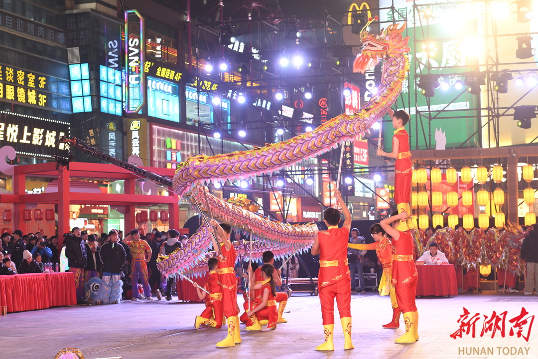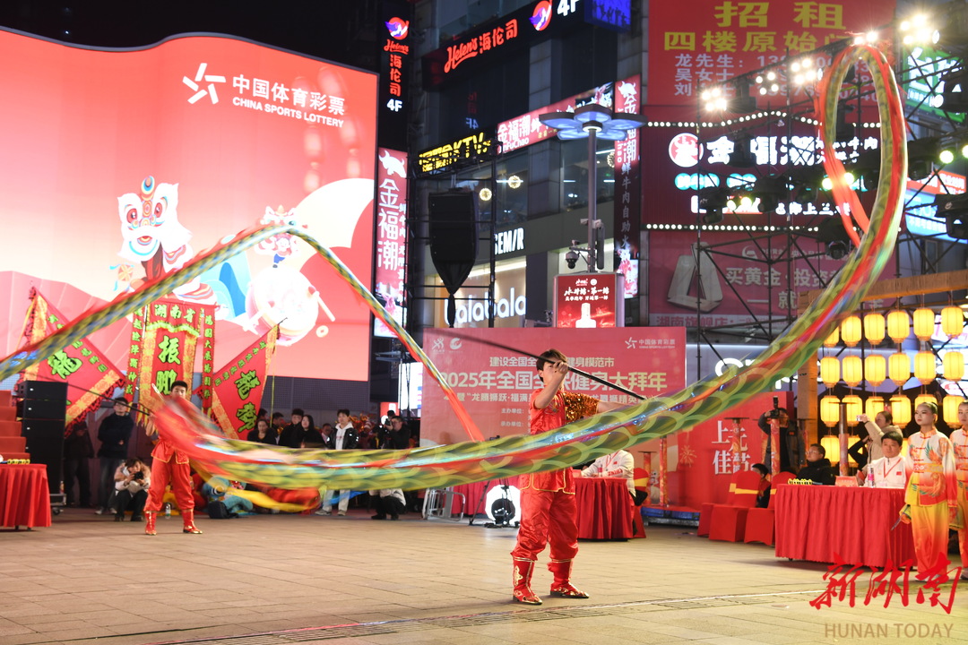 新湖南客户端2月12日讯(记者 胡旻)2月11日是蛇年农历正月十四,当晚,2025年全国全民健身大拜年暨“龙腾狮跃·福满星城”2025长沙市舞龙舞狮精英赛在黄兴路步行街中心广场举行。来自长沙各区县市的18支舞龙舞狮队伍同台献技,为广大市民和游客绽放非物质文化遗产的独特魅力。