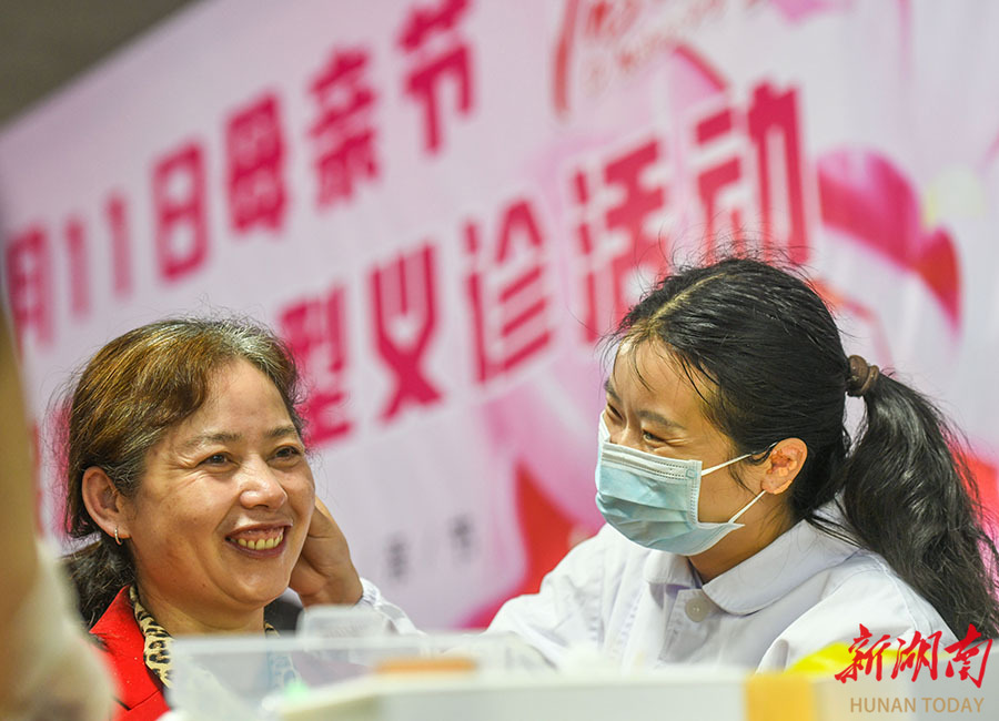 5月11日,医护人员为市民开展耳穴压豆中医特色疗法调理。当天是母亲节,道县人民医院开展“感恩母亲节”关爱女性健康义诊活动,为群众免费开展中医特色疗法调理、健康睡眠知识咨询服务,表达对母亲的敬意和感恩之情。 蒋克青 熊小英 摄影报道(湖南图片库)