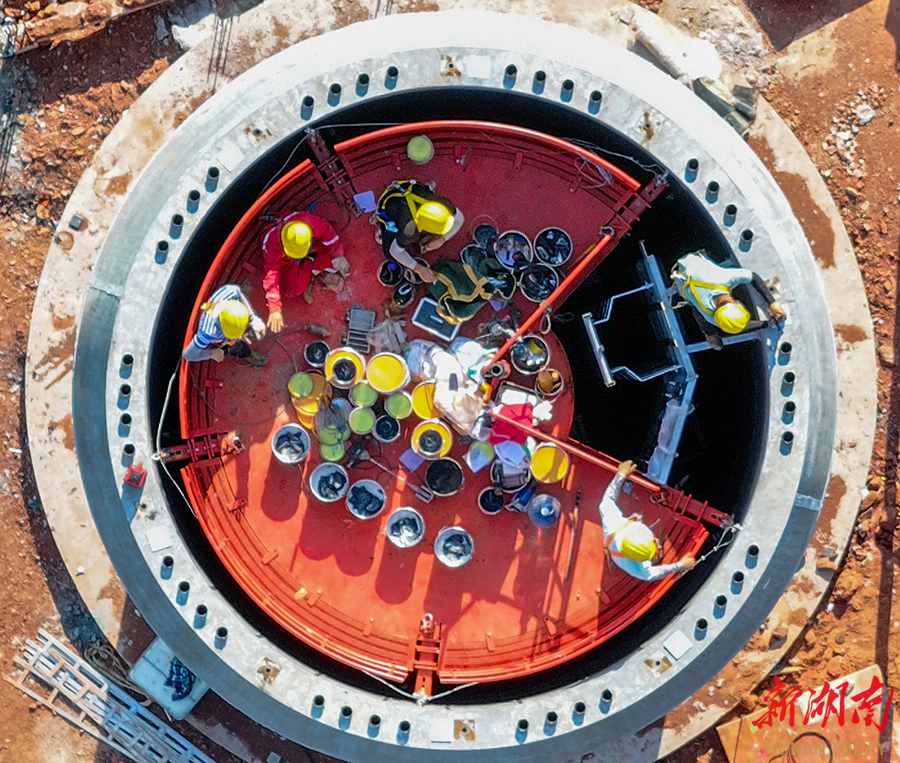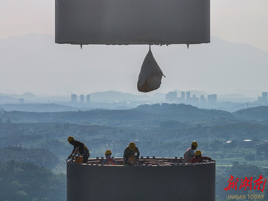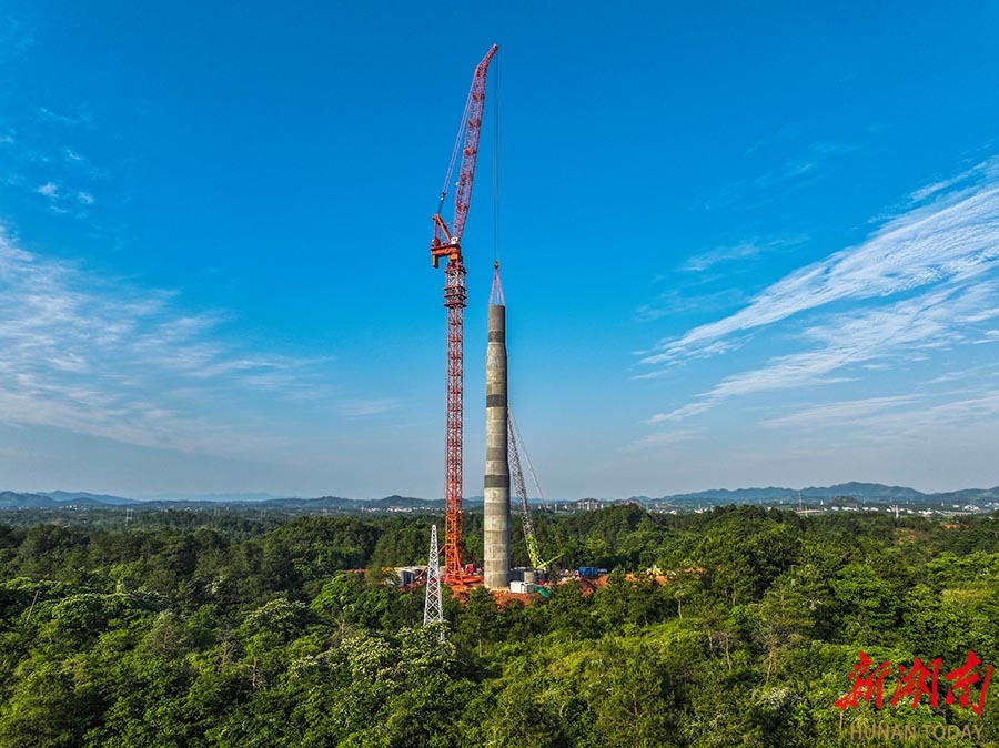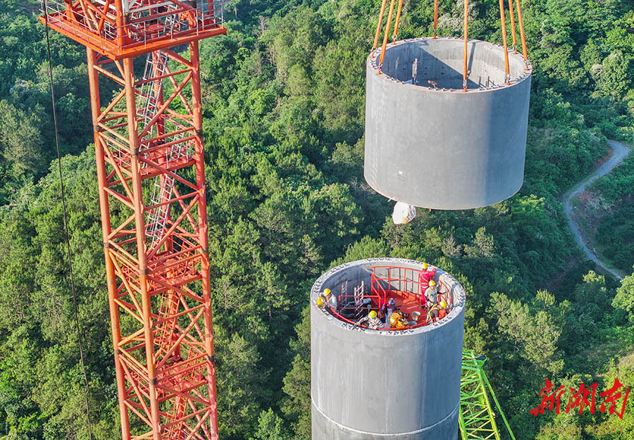 5月11日,道县白芒铺风电场,工人在吊装风机塔筒。道县白芒铺风电场项目总投资约4亿元,拟采用10台单机容量为5.0MW的风力发电机组,装机容量为50MW。近年来,道县加快能源结构转型升级,大力发展风力、光伏等新能源发电项目建设,多个风力发电和光伏发电项目相继投入运行,为当地经济发展提供电力保障的同时,也为群众增加了收入。 蒋克青 摄(湖南图片库)