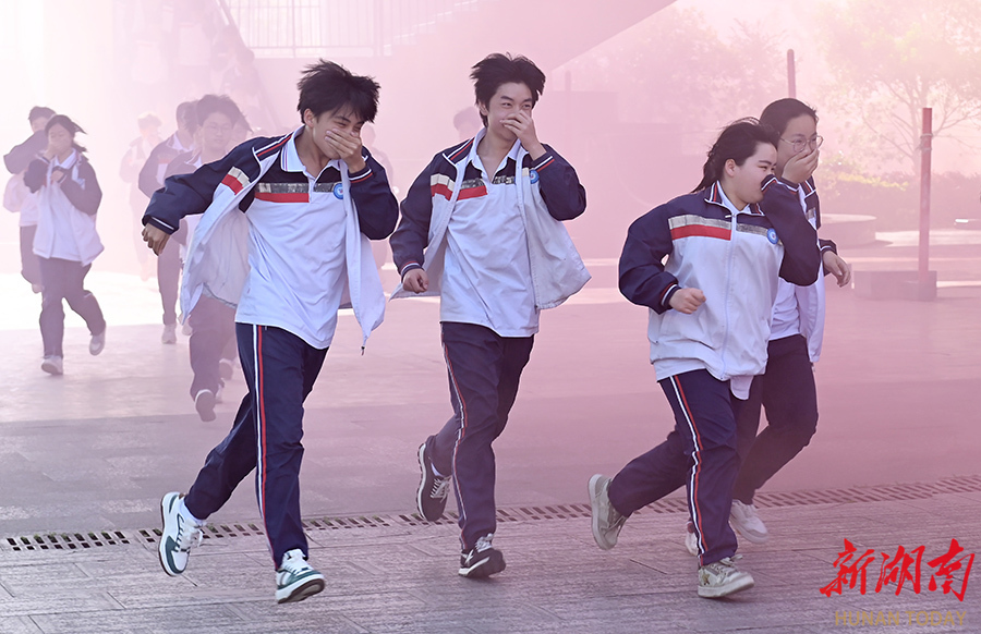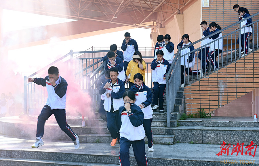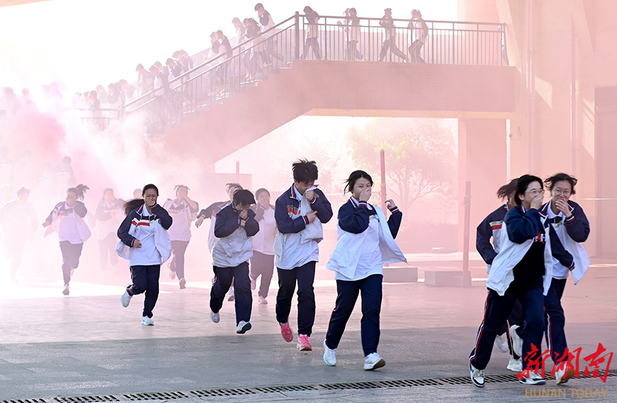 5月12日,洞口县文昌街道思源实验学校,学生在模拟火灾现场进行应急疏散演练。当天是第17个全国防灾减灾日,该县各中小学校开展普及防灾减灾知识和应急避险演练等活动,提高广大师生安全自救和应急避险能力。 滕治中 摄(湖南图片库)