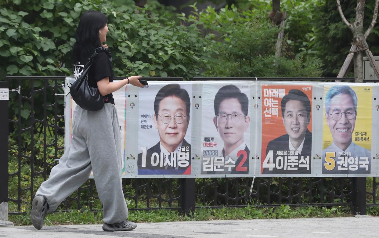 6月2日,行人经过韩国首尔一处总统候选人宣传海报。新华社记者 姚琪琳 摄