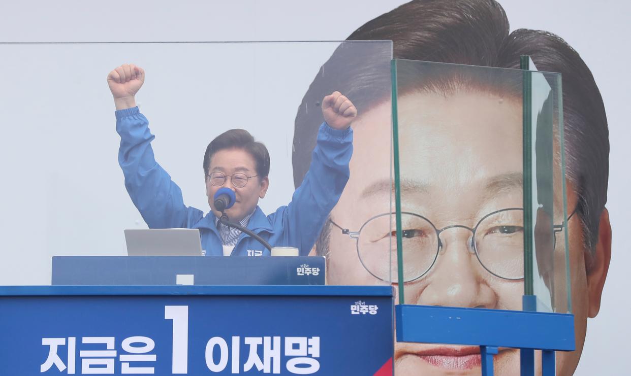 6月2日,韩国共同民主党候选人李在明在首尔参加竞选活动。新华社记者 姚琪琳 摄