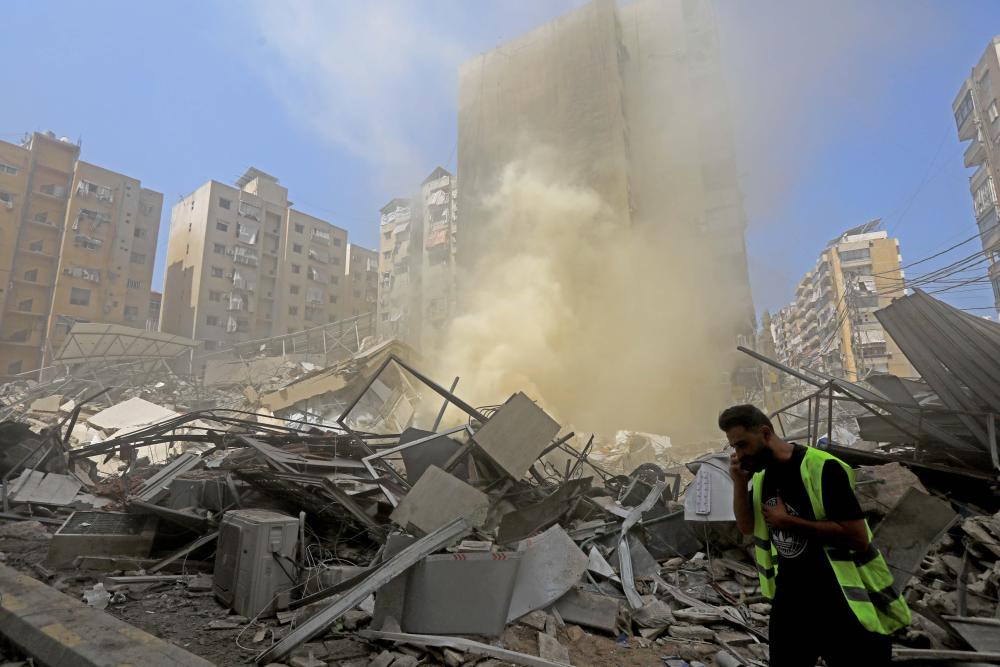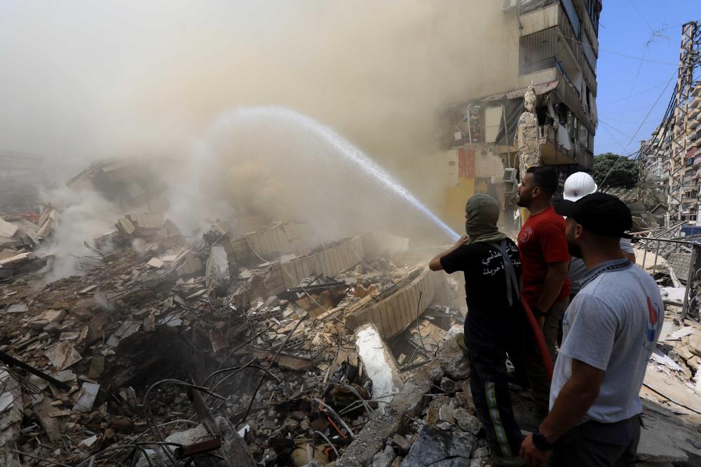 这是6月6日在黎巴嫩贝鲁特南部代希耶地区拍摄的以色列袭击后的景象。