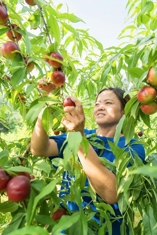 在城步苗族自治县儒林镇石羊村,金黄的黄桃压弯枝头,果农们穿梭林间采摘装箱。当地立足高山气候,发展早、中、晚熟黄桃,通过套袋技术提升品质,错峰供应市场。全县黄桃种植面积超3000亩,年助农增收近千万元。