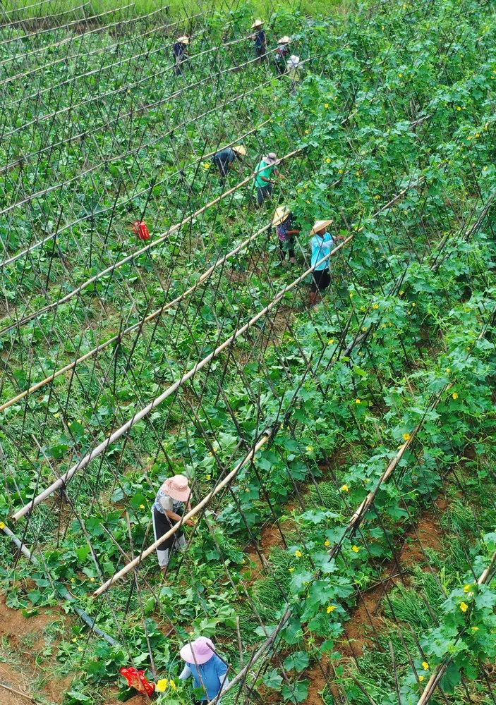 洞口县高沙镇高沙村的葡萄园内,果农顶着烈日采摘饱满果实,供应炎夏市场。
