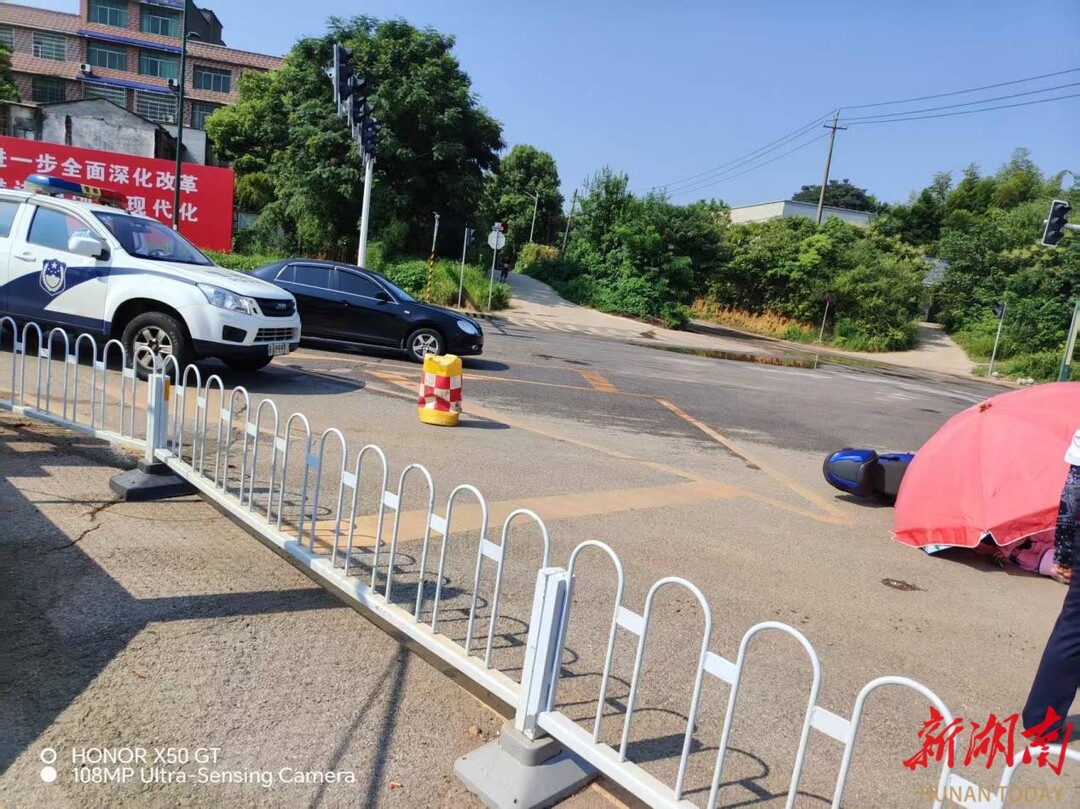 与此同时,刘喜林飞奔回家,取来一把大遮阳伞。他深知高温暴晒的危险,迅速为伤者撑起一片宝贵的阴凉。考虑到路口车流密集,他又找来立桶设置警示区,疏导交通,严防二次事故。
