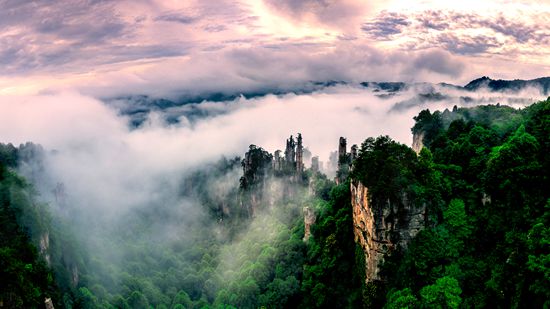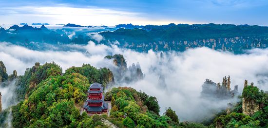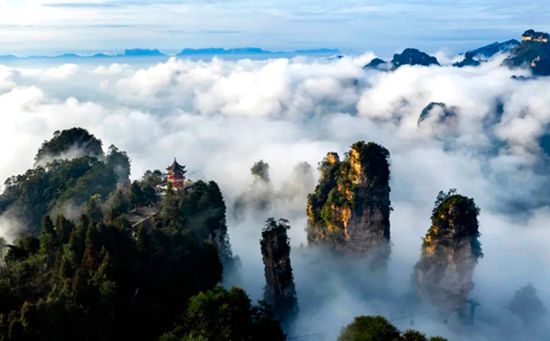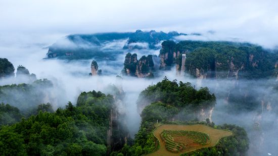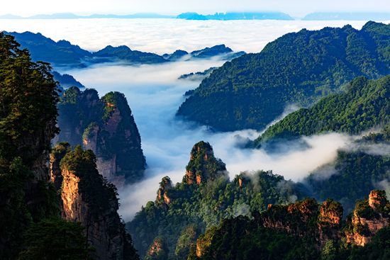 作为世界自然遗产所在地,张家界武陵源以独特的石英砂岩峰林地貌闻名于世,3000余根形态各异的峰柱拔地而起,构成了一幅天然的山水画卷。