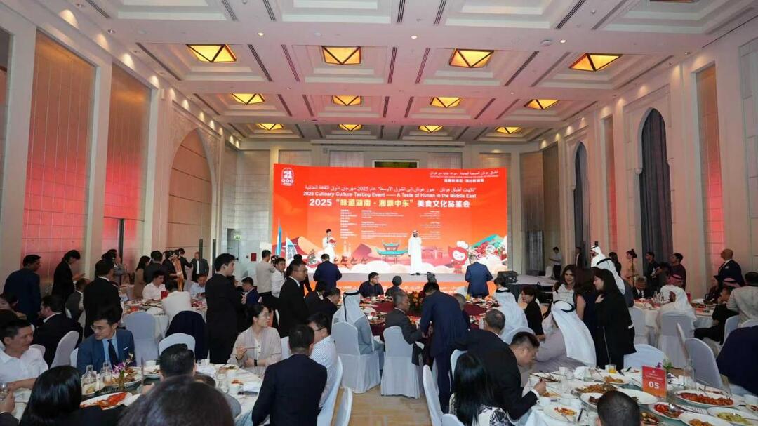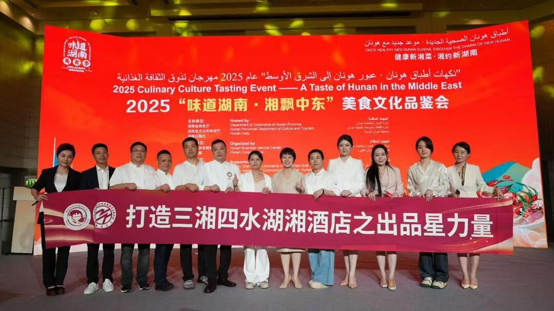 当地时间9月9日下午,2025“味道湖南·湘飘中东”湘菜文化推广活动在阿联酋香格里拉酒店盛大举行,此次活动通过产业对接、战略签约、美食品鉴、湘菜国际培训等板块,推动湘菜文化及产业与中东接轨,书写湘菜出海崭新篇章。长沙融通长城宾馆餐饮主理人、湖南省旅游饭店协会星厨专业委员会会长贺俊贤作为美食文化品鉴会主理大师之一,带领团队精心制作多道融合创新菜品,不仅展示了精湛厨艺,更体现了湘菜人的团结协作精神,赢得现场嘉宾多番赞誉。