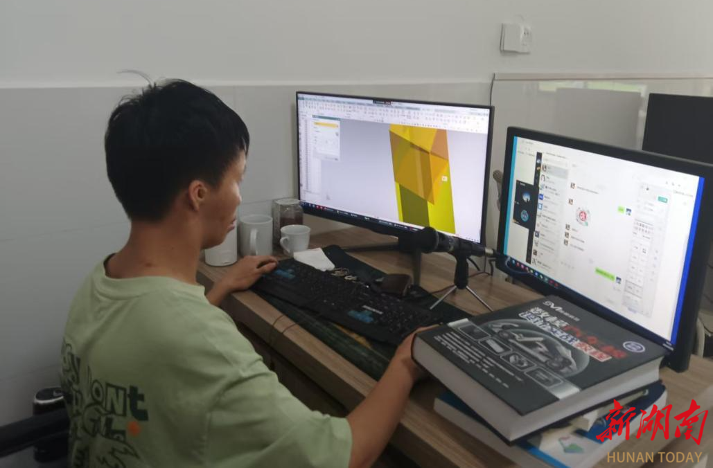 今年,龚自强与师傅吴建根正式合伙创办长沙智晖科技有限公司,主要从事模具设计,服务领域涵盖汽车零部件、家电等行业。公司规模不大,只有4个人,但每个人都充满干劲。