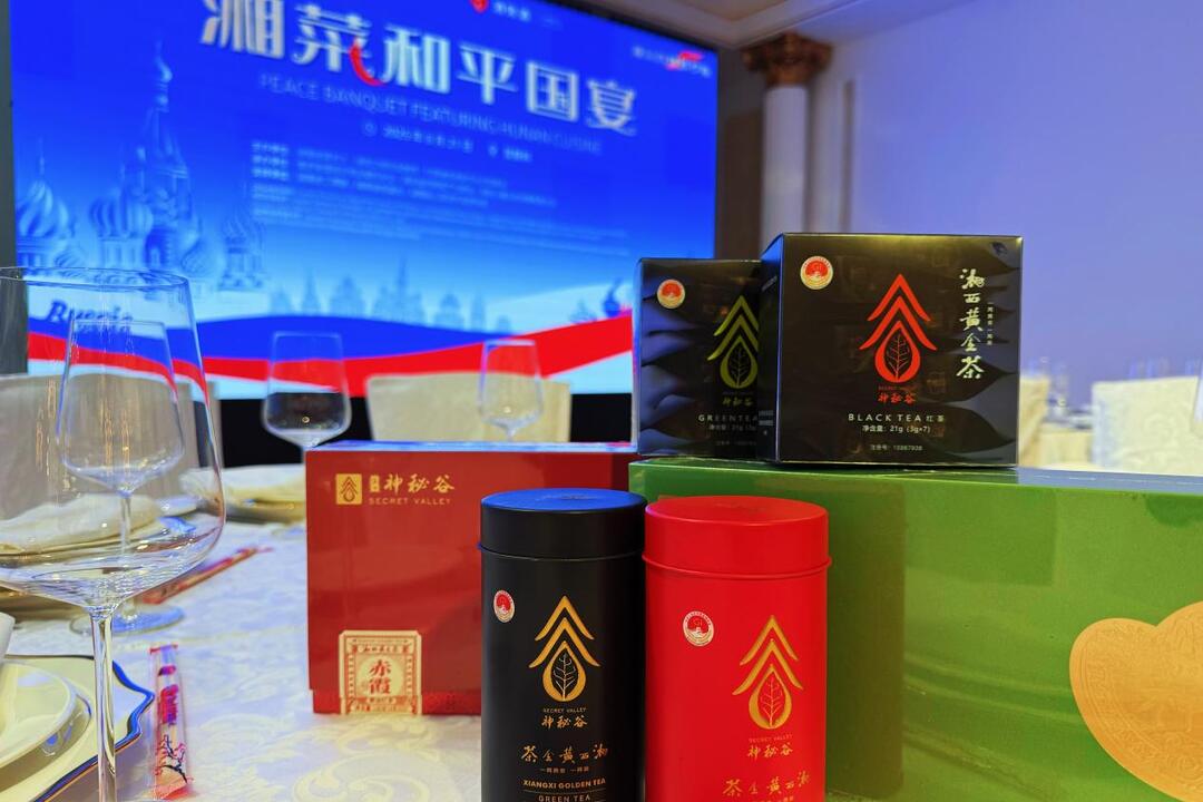 湘菜国宴岂能没有湘茶?这次随同湘菜推广团带到莫斯科的湘西神秘谷黄金茶也摆上了国宴的餐桌。都说无酒不成席,其实在异域人的目光里,茶才是最重要的。因为它最能代表中国,代表中国文化。