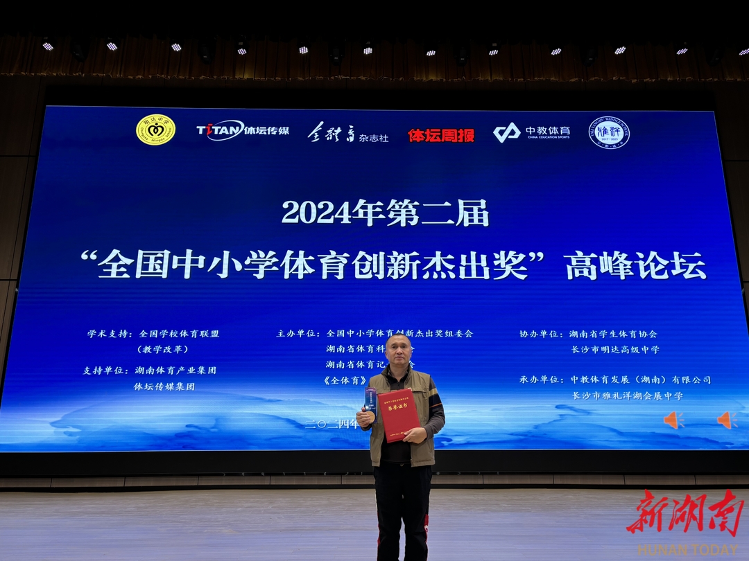 如今走在栗雨小学的香樟树下,听着操场上传来的哨声和竹笛声,忽然觉得那些在栗雨小学度过的日夜,早已刻进我的生命:这里有我和老师们翻新器材室的汗味,有校本课程研究的深夜,更有无数个孩子跑过来喊“校长,看我进步了”的瞬间。有人问我,当校长这么多年,最骄傲的事是什么?我总会想起小宇、小翔毕业时送我的笔记本,第一页画着戴草帽的校长和穿校服的孩子,旁边写着:“您让我知道,跑慢一点也没关系,只要不停下来,就能追上光。”而我想说,感谢这些孩子,让我在追逐教育理想的路上,也成了被光笼罩的人。株洲市义务教育阶段体育学科基地主持人、株洲市新时代名校长计划培养对象、湖南工业大学体育学院成长导师、全国中小学体育创新杰出校长等荣誉,也算是对我的一个肯定。