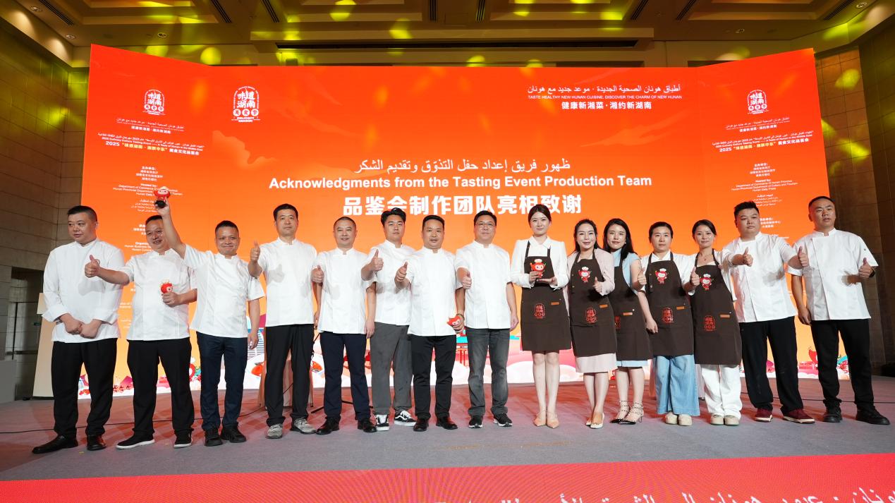 夜幕降临,2025“味道湖南·湘飘中东”美食文化品鉴会将活动推向高潮。此次品鉴会以“融合与创新”“健康与美味”为核心理念,充分展现“新质湘菜”的独特形象与魅力。近20道精心烹制的美食,汇聚了19个湘菜企业和食品企业的心血与匠心,掌勺大厨们从湖南、北京、广西等地奔赴而来,只为让湘菜在中东绽放光彩。
