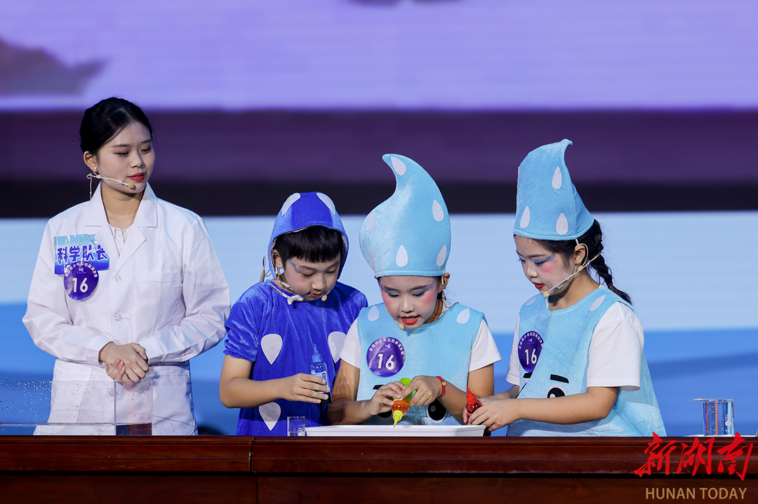 决赛现场,各参赛队伍围绕化学反应与物质变化、力与运动、电磁光声现象、环保能源、生命科学、人工智能等多个领域,带来了精彩纷呈的实验展演。长沙市实验小学的“调皮的静电”生动展示了静电现象的魅力;湘潭市岳塘区湖湘学校的“让光自己画画——干涉实验趣味演示”用创意方式诠释光学原理;张家界崇实小学北校的“电魔王陨落记”则通过情景剧形式普及用电安全知识。各个展演项目既体现了科学性和创新性,又兼具趣味性和观赏性,引人入胜。