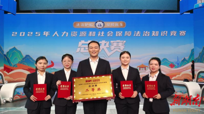 新湖南客户端9月19日讯(通讯员 谭京京)9月15日至16日,“法治护航·保障民生”2025年人力资源和社会保障法治知识竞赛在山东济南落下帷幕。经过激烈角逐,湖南省代表队荣获晋级赛一等奖,总决赛二等奖,总排名位列全国第五。