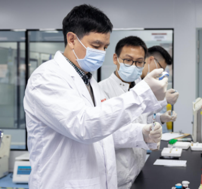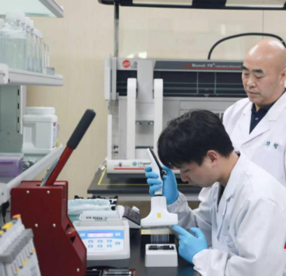 华智生物生物技术与数据科学创新研究院执行副院长贾高峰指导团队成员做实验。