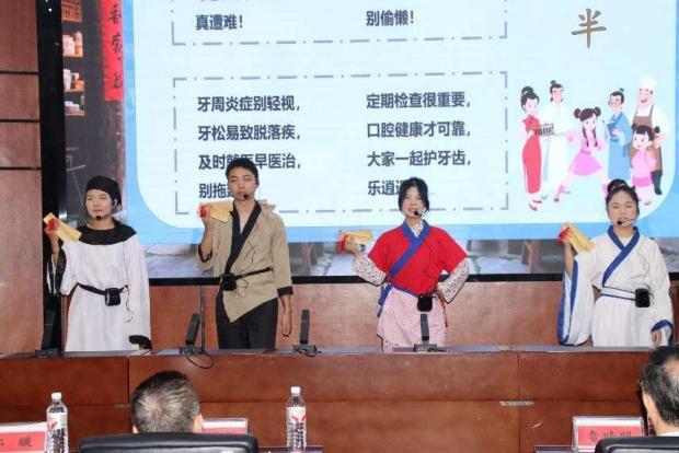 在科普环节,湖南中医药大学口腔医学院学生自编自演的科普剧《牙周风云》成为一大亮点。学生们以生活化的剧情、幽默易懂的语言,将 “牙周疾病成因”“日常预防方法” 等专业知识融入表演,让在场师生在轻松氛围中掌握牙周健康要点,引发广泛共鸣。随后,长沙市口腔医院修复科副主任、“十佳医师” 牛薇带来《健康生活,从 “齿” 开始》主题讲座,她结合临床中常见的龋病、牙周炎等真实病例,详细讲解 “正确刷牙方法”“口腔检查频率”“饮食控糖与口腔健康关联” 等实用知识,现场互动踊跃,师生提问不断,知识传递高效且深入。