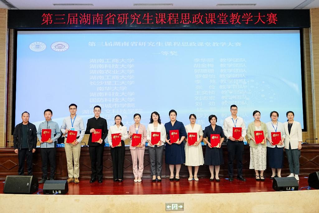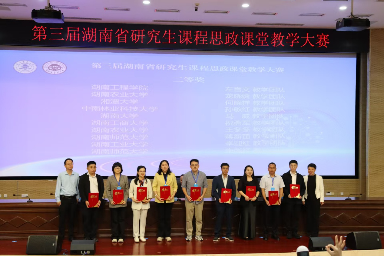 颁奖典礼上,湖南省教育厅学位管理与研究生教育处副处长刘梦清表示,希望广大教师以此次大赛为新起点,持续深化对课程思政教学的实践和研究,共同构建研究生教育“大思政”格局,推动我省研究生教育高质量发展,着力培养担当民族复兴大任的时代新人。