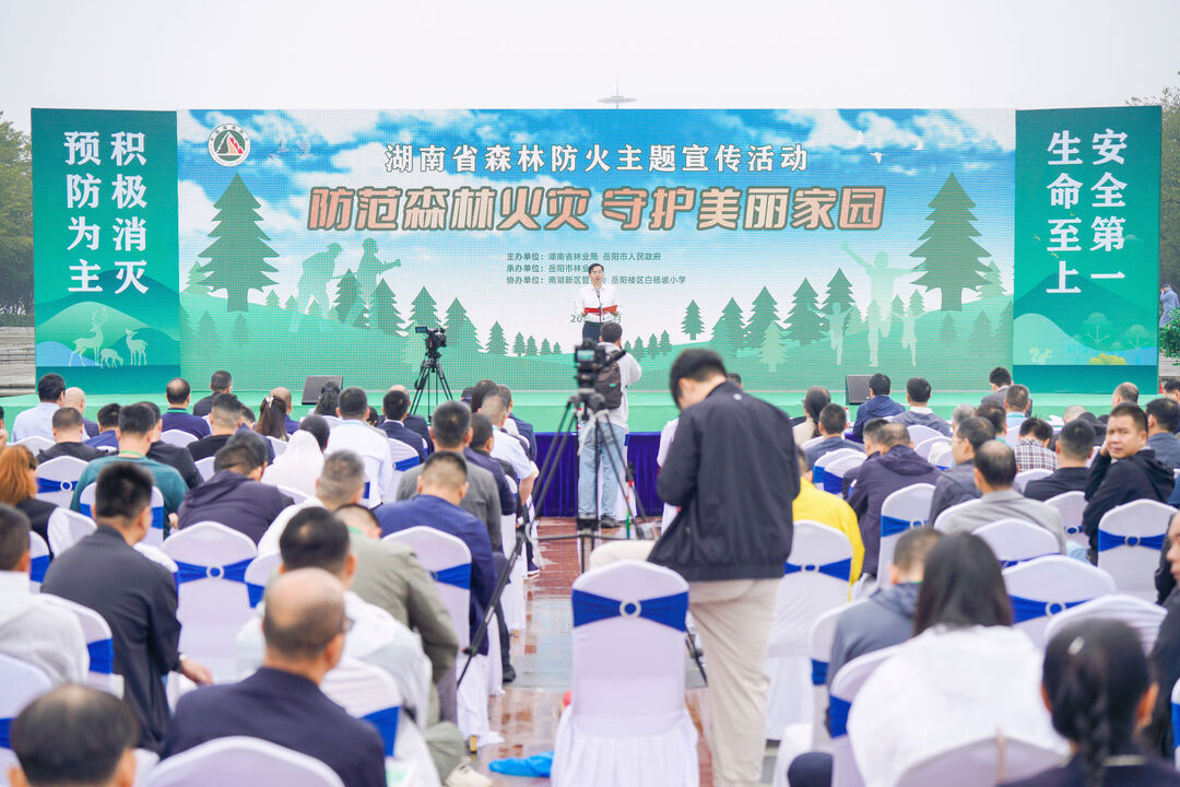 新湖南客户端9月22日讯(记者 陈龙)为进一步提升全民防火意识,筑牢森林安全屏障,营造全社会共同参与森林防火的良好氛围,9月22日,以“防范森林火灾 守护美丽家园”为主题的湖南省森林防火主题宣传活动在岳阳市南湖广场举行。省林业局党组成员、副局长胡锋出席活动并讲话,岳阳市委常委、副市长李美云出席活动并致辞。