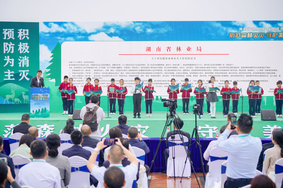 活动现场,岳阳市巴陵戏剧团表演了森林防火主题情景剧《青山有约》,生动再现了生态护林员刘青山四十年如一日守护青山的感人事迹,深情讴歌了全省5.4万余名生态护林员的坚守与奉献;湖南省森林防火形象大使魏哲浩携手学生代表,共同宣读《关于切实做好森林防火工作的倡议书》,呼吁全社会共同行动,防火于未“燃”;平江县与岳阳县森林消防队伍现场开展火灾扑救演练,全面展示了森林消防队员出色的协同作战能力、快速响应和火情控制水平。