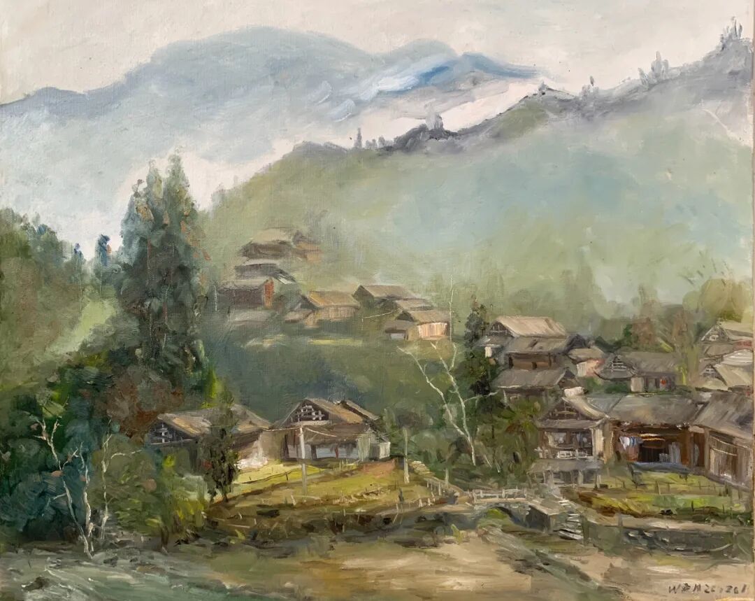 《洗车河谢家寨》 油画 王忠华