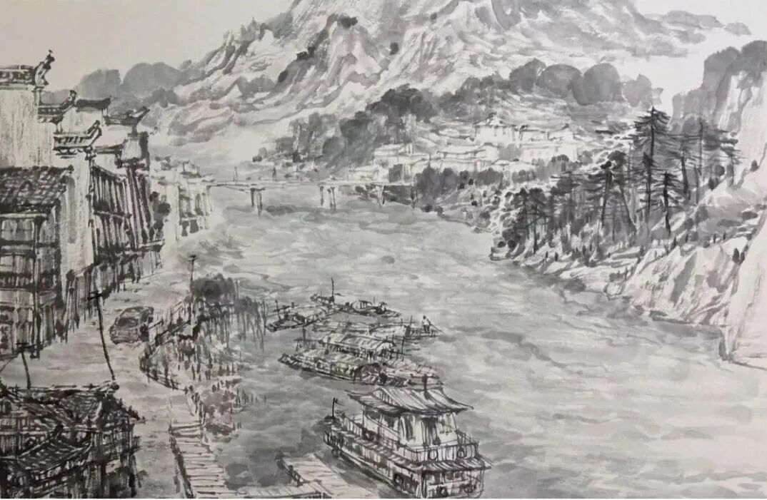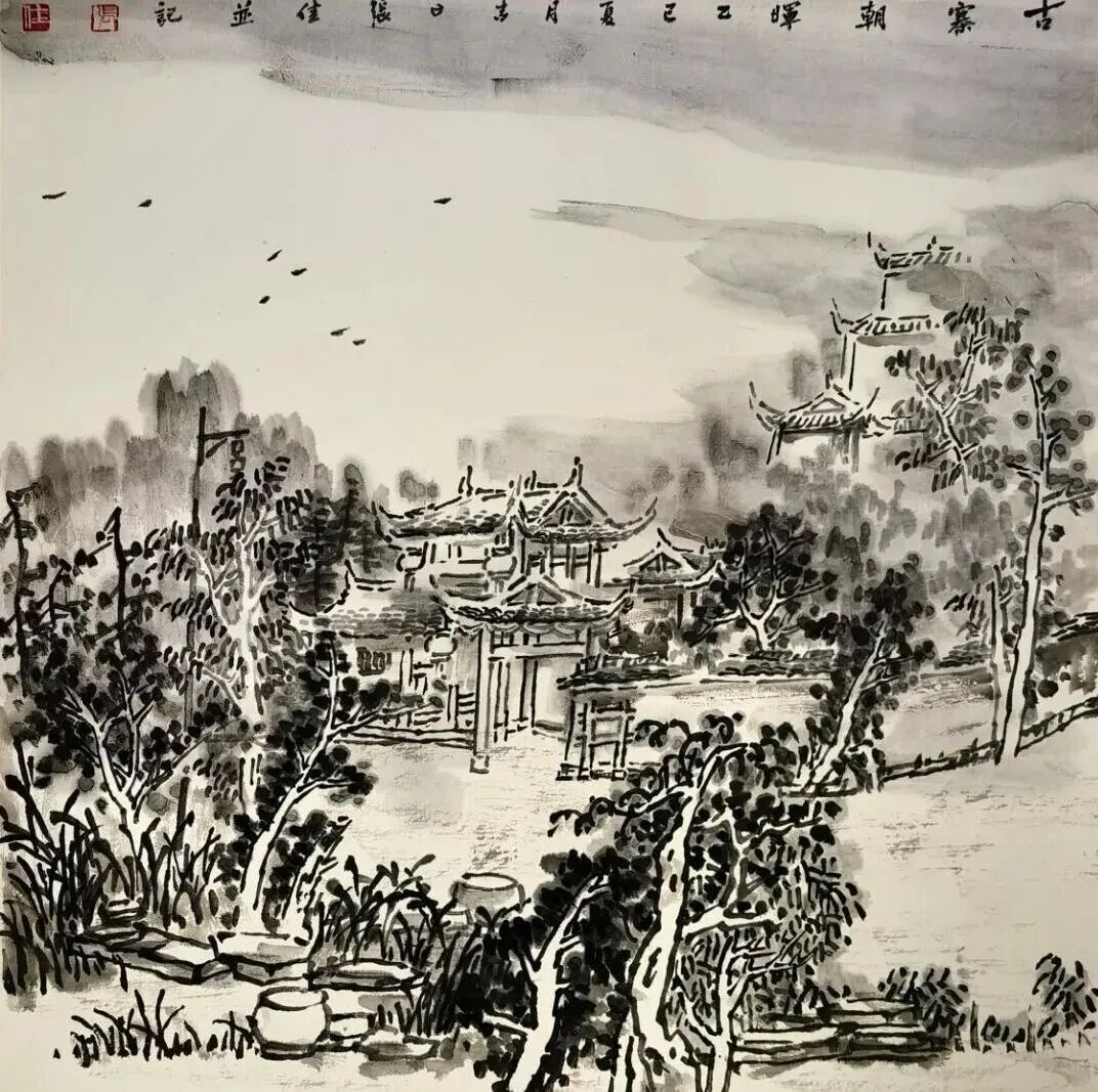 《古镇》 纸本水墨 谢海斌