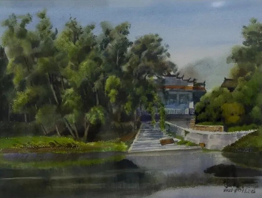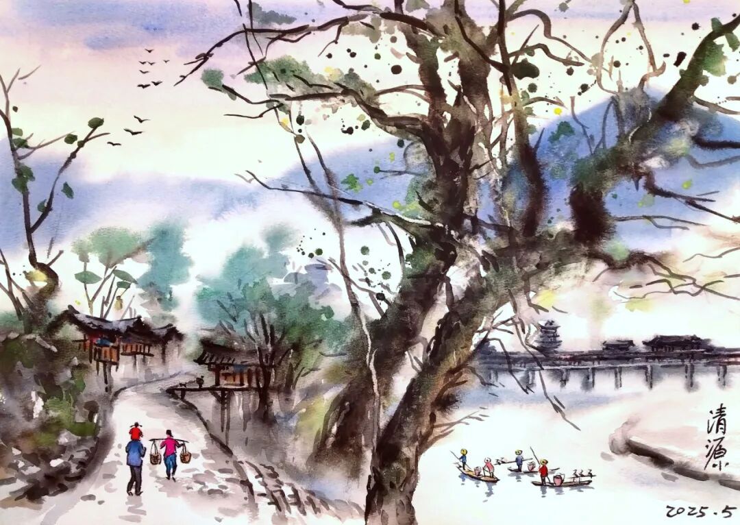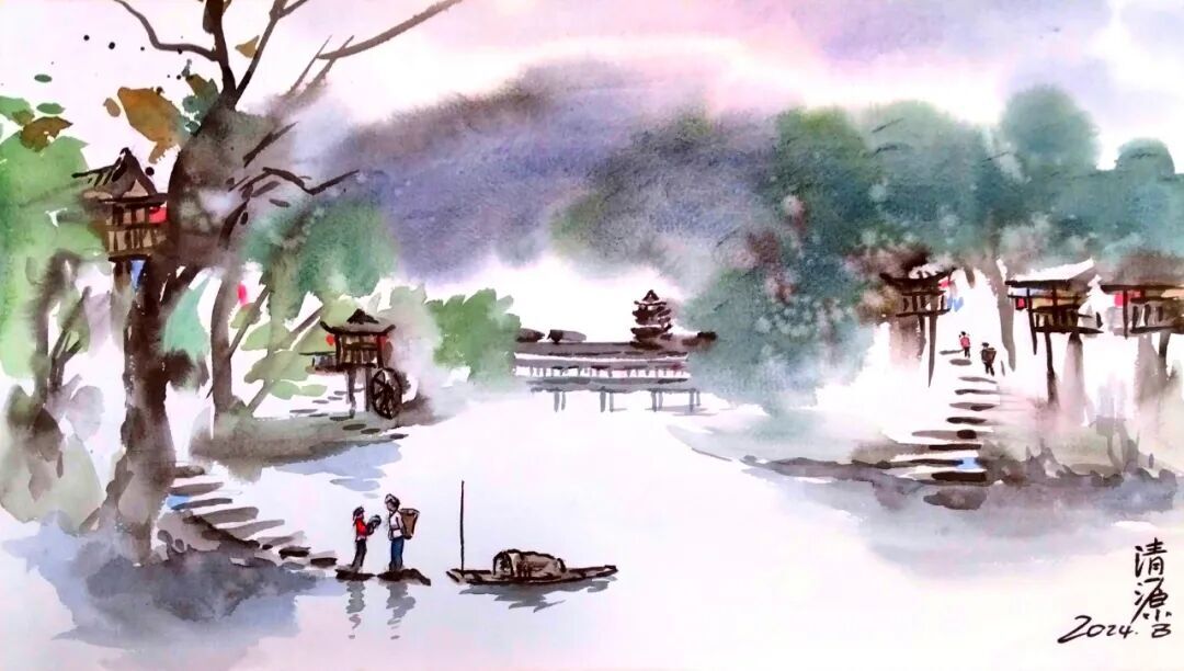 《宁静的渡口》 水彩 向黎明