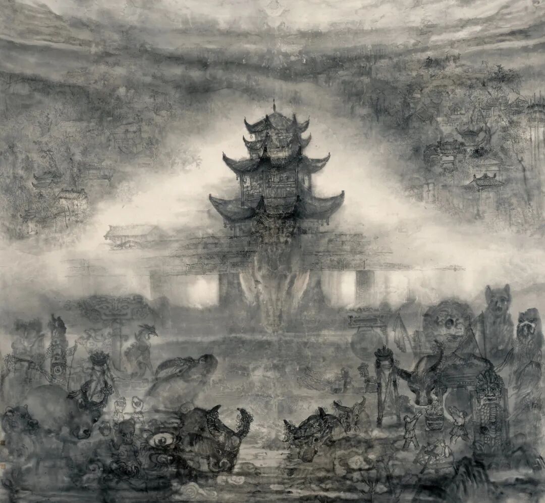 《土寨烟云》 卡纸水墨 吕小明