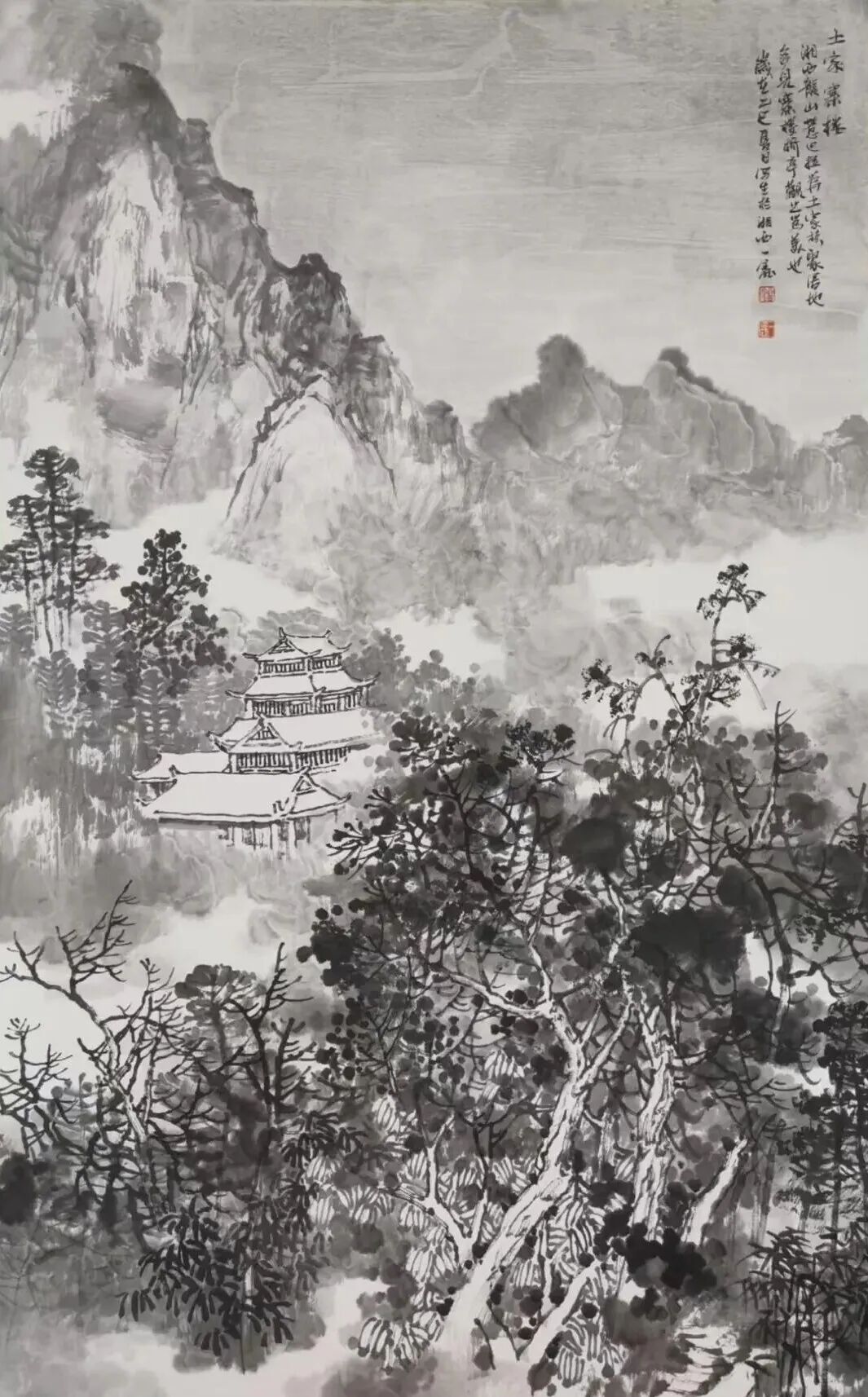 《土家山寨》 国画 李显龙