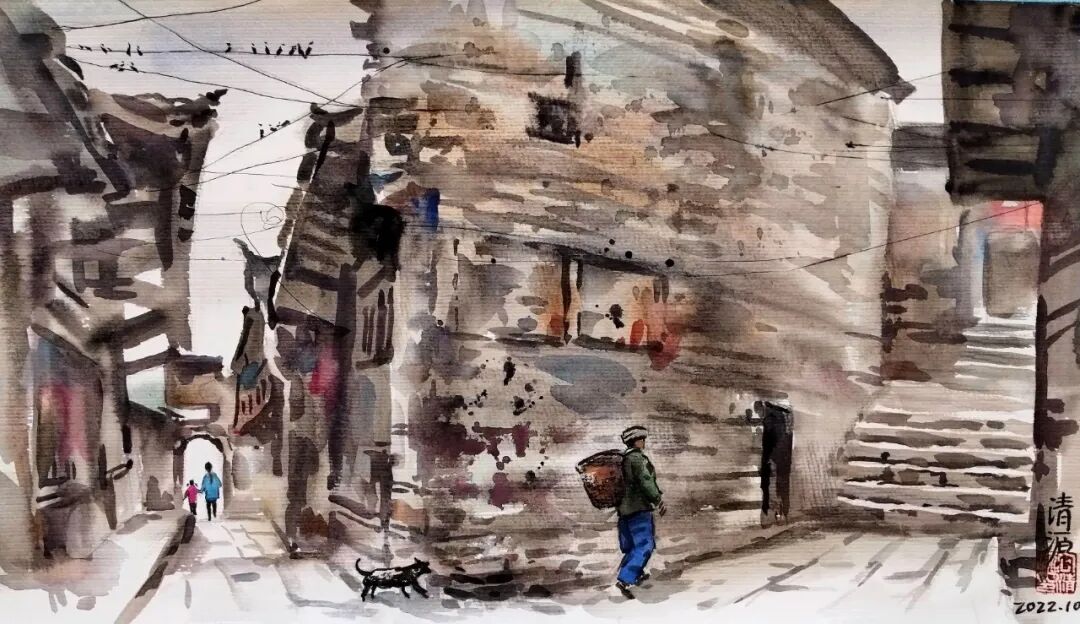 《老街》 水彩 向清源