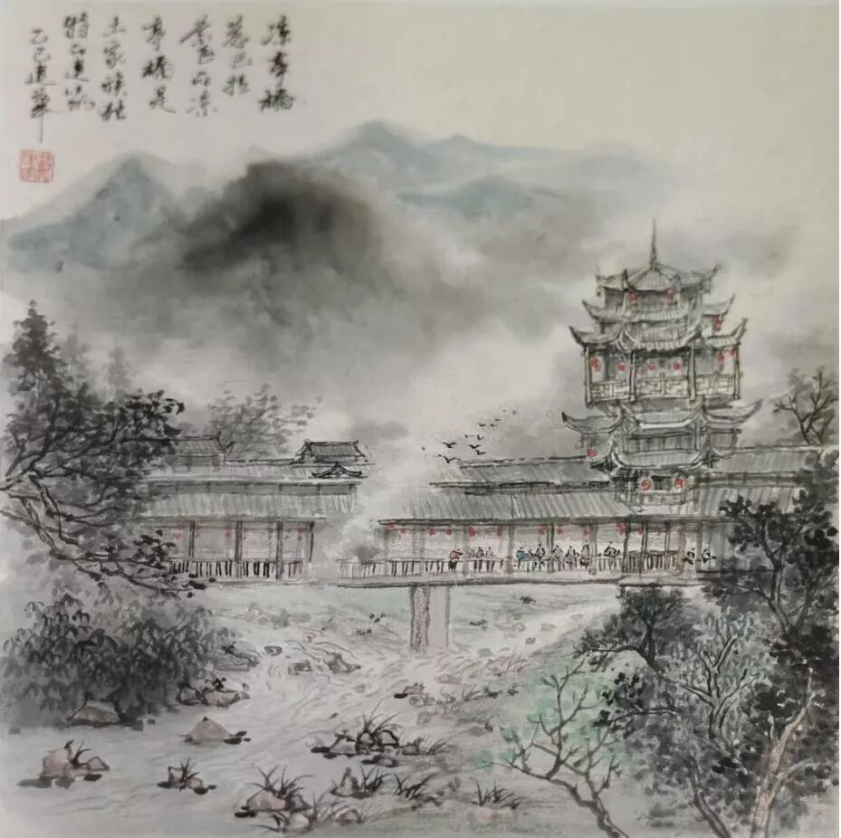 《土家凉亭桥》 卡纸水墨 吕小明