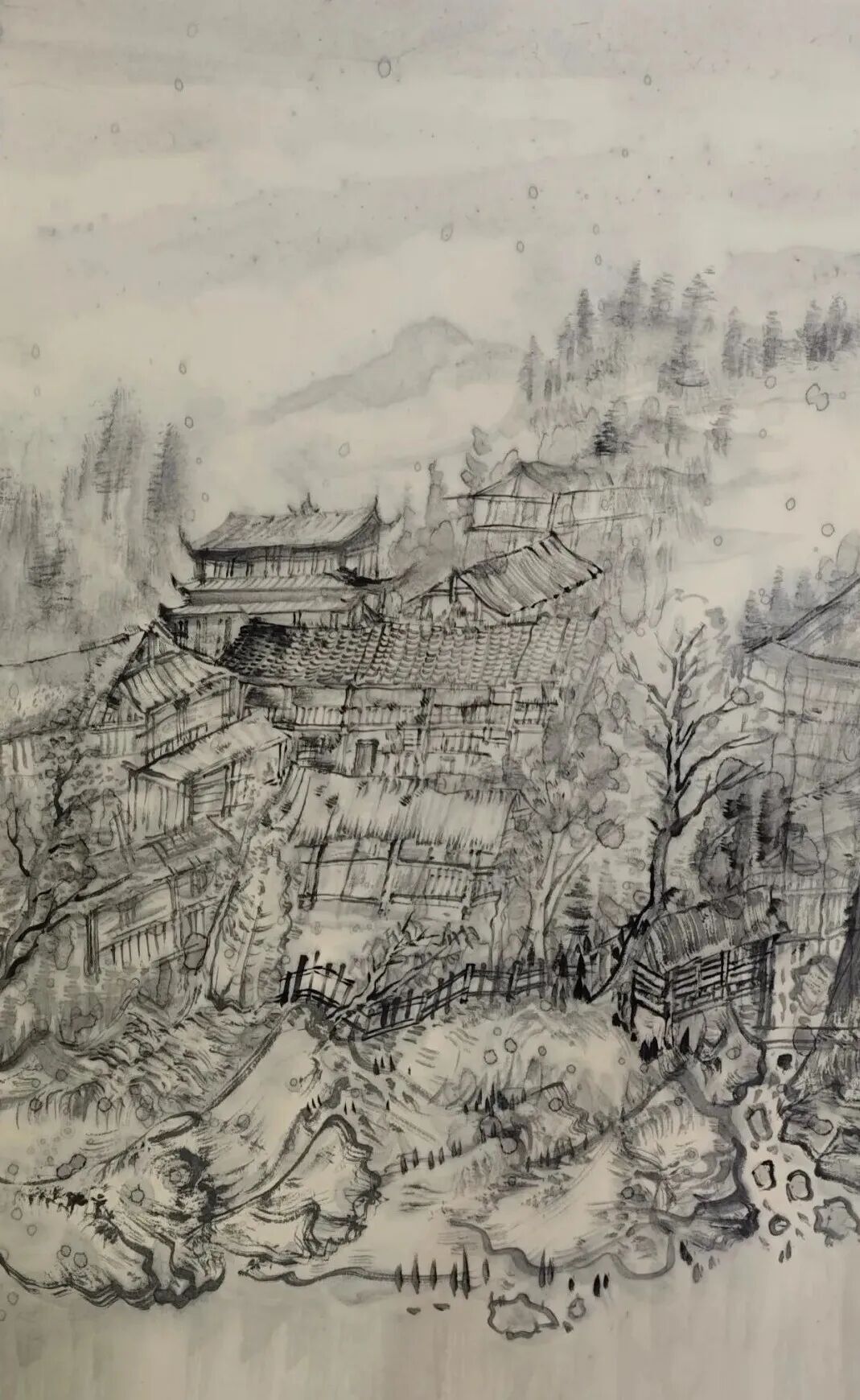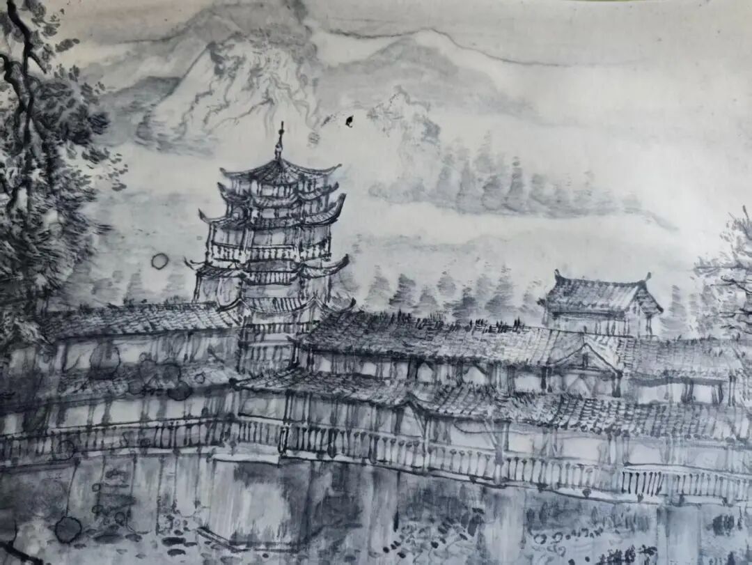 《土家寨楼》 卡纸水墨 刘一鑫