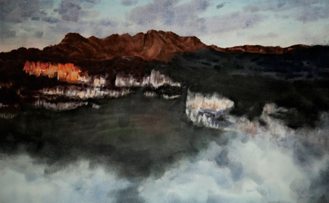《晨曦映山岗》 水彩 王旭东