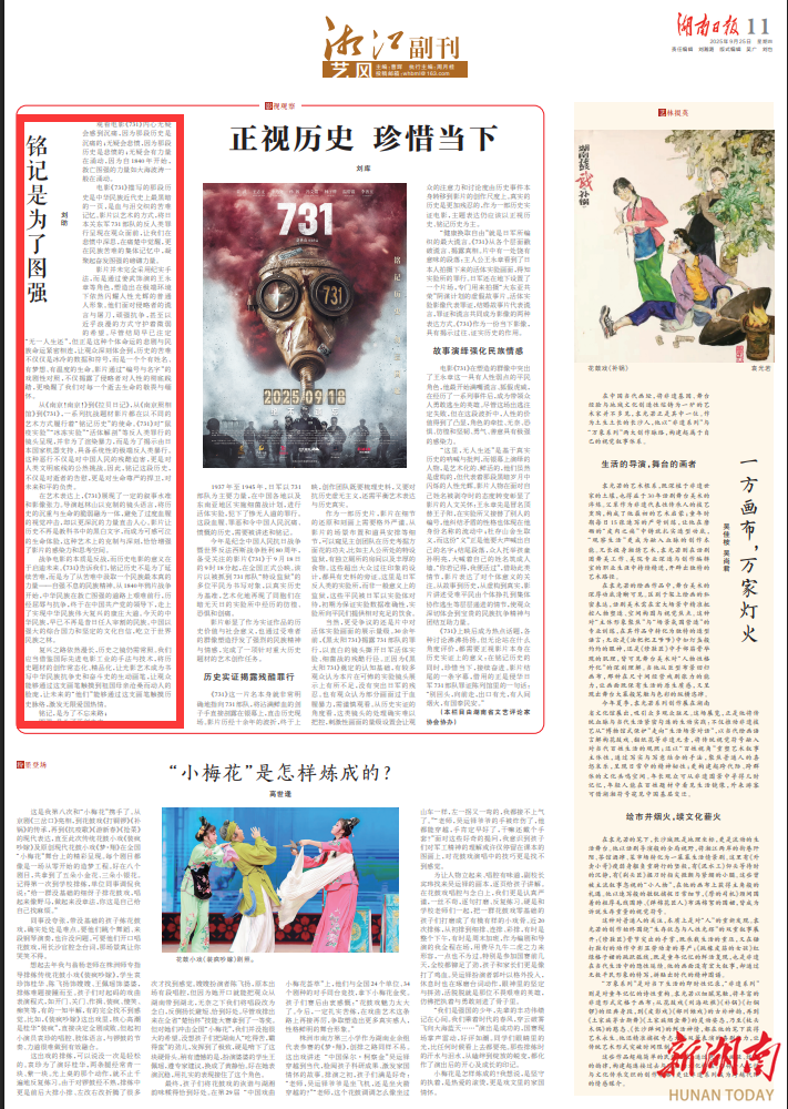 电影《731》描写的那段历史是中华民族近代史上最黑暗的一页,是血与泪交织的苦难记忆。影片以艺术的方式,将日本关东军731部队的反人类罪行呈现在观众面前,让我们在悲愤中深思,在痛楚中觉醒,更在民族苦难的集体记忆中,凝聚起奋发图强的磅礴力量。