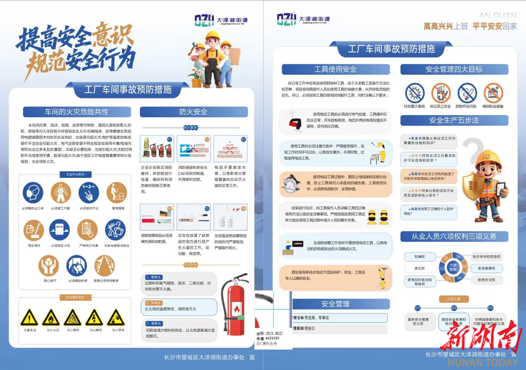 新湖南客户端9月26日讯(通讯员 黄奕)为切实提升辖区企业及居民的安全防范意识,夯实安全生产基础,近日,长沙市望城区大泽湖街道组织开展消防安全和企业安全宣传活动,通过发放宣传单、宣传册等形式,向辖区企业员工及居民普及安全知识,营造“人人讲安全、事事为安全、时时想安全、处处要安全”的良好氛围。