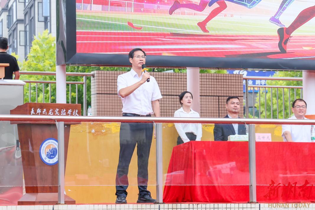 最后,石峰区委书记、株洲经开区党工委书记邹志超郑重宣布:“长郡云龙实验学校第六届体育文化节暨田径运动会,开幕!”这一声宣告,如同吹响青春的冲锋号,瞬间引燃全场欢呼与激情,也预示着在接下来的赛场上,每一名学子都将为梦想奋力拼搏、挥洒汗水。